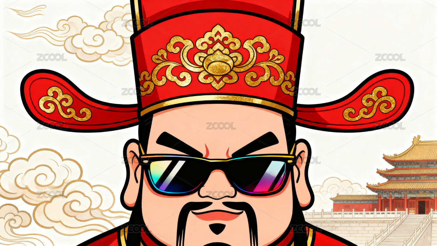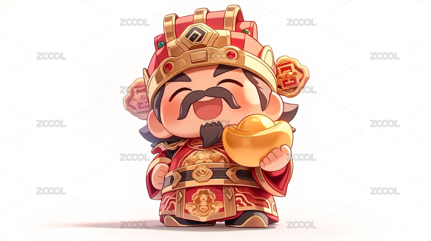 竖版龙年五路财神中路王亥红色官服喜庆过年