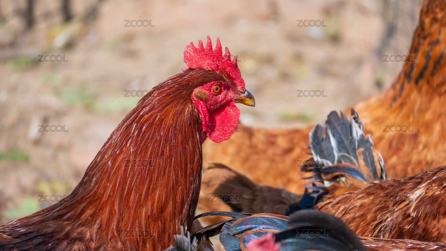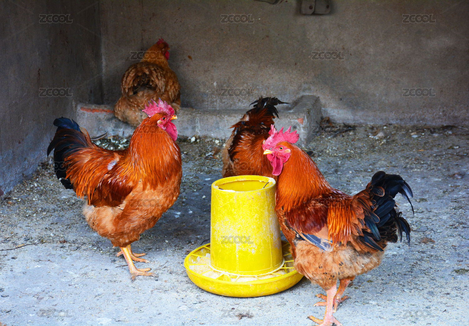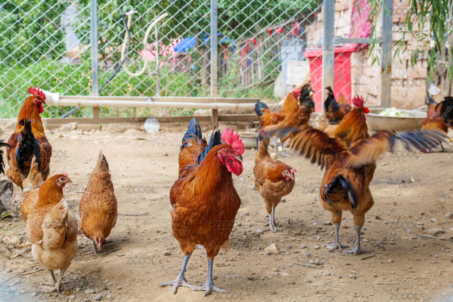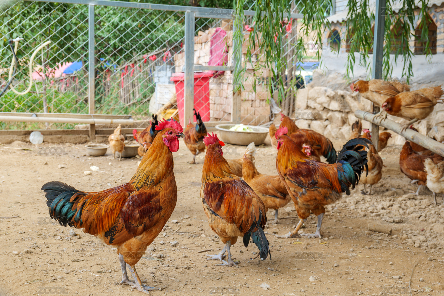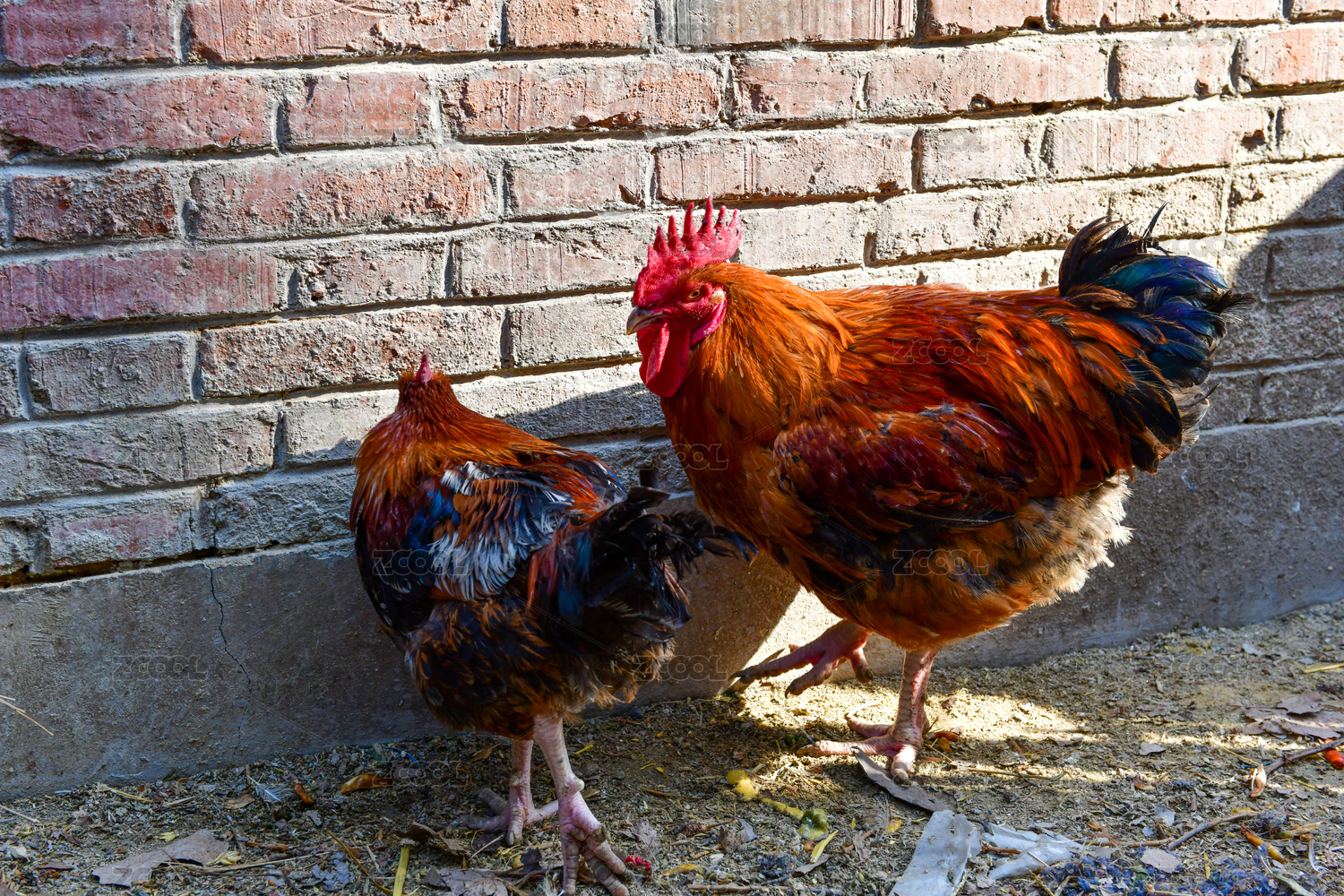 乡村农家饲养的土鸡 公鸡母鸡吃食
