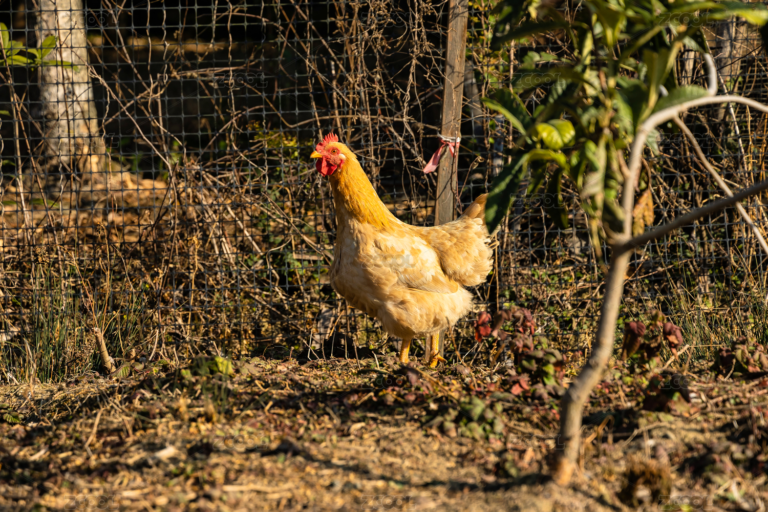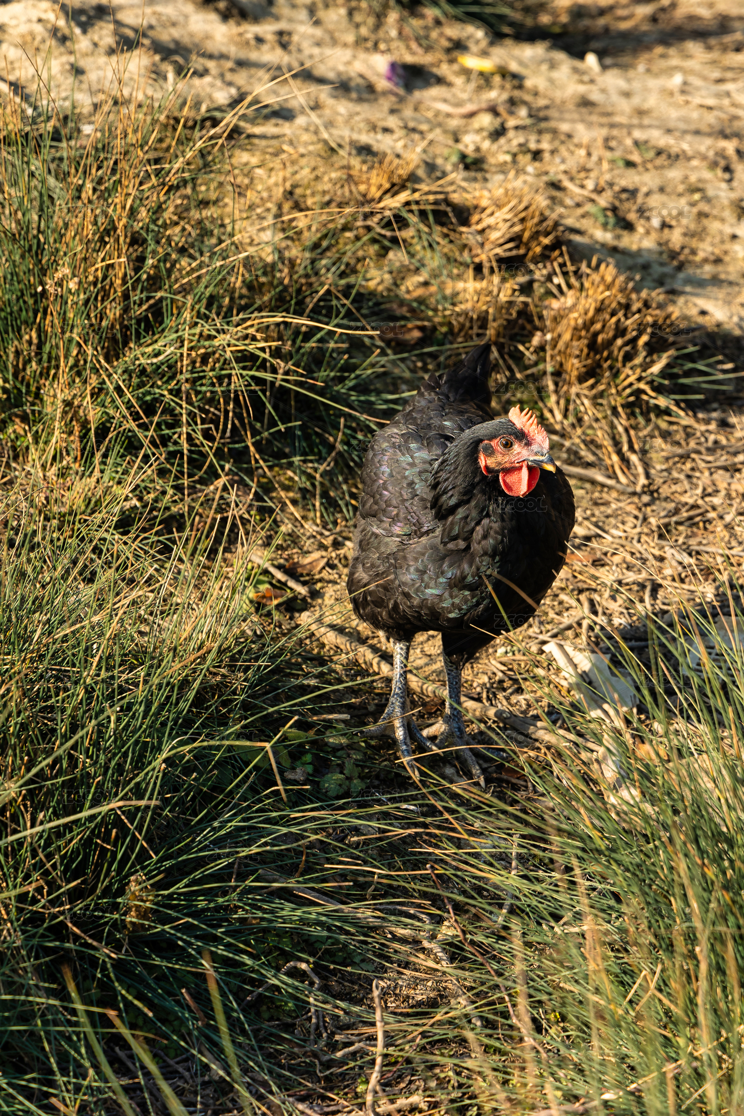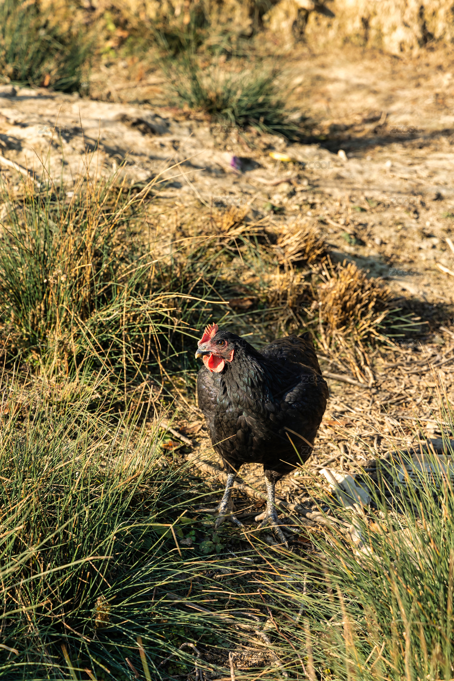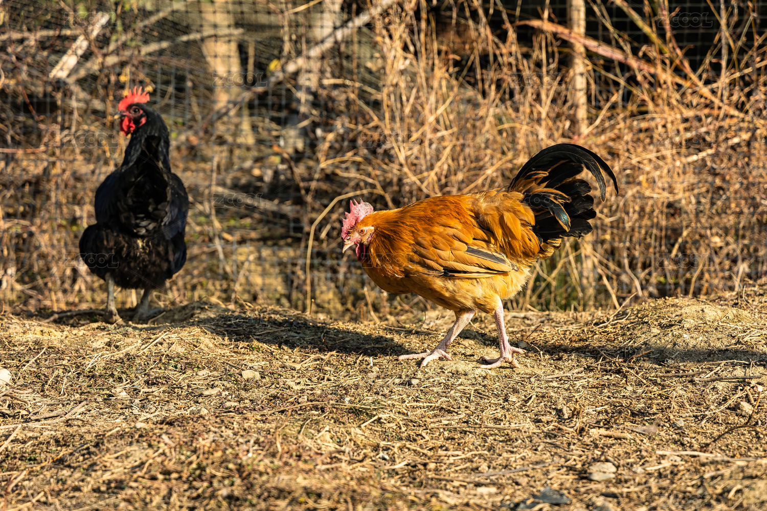 乡村农家饲养的土鸡 公鸡母鸡吃食