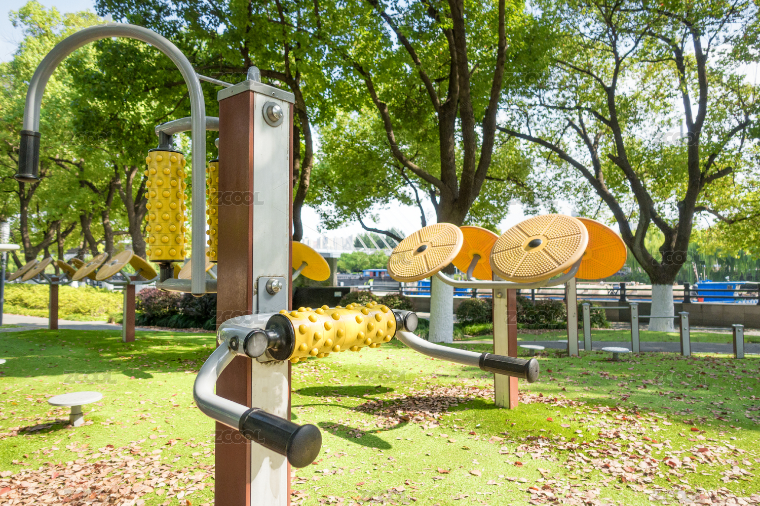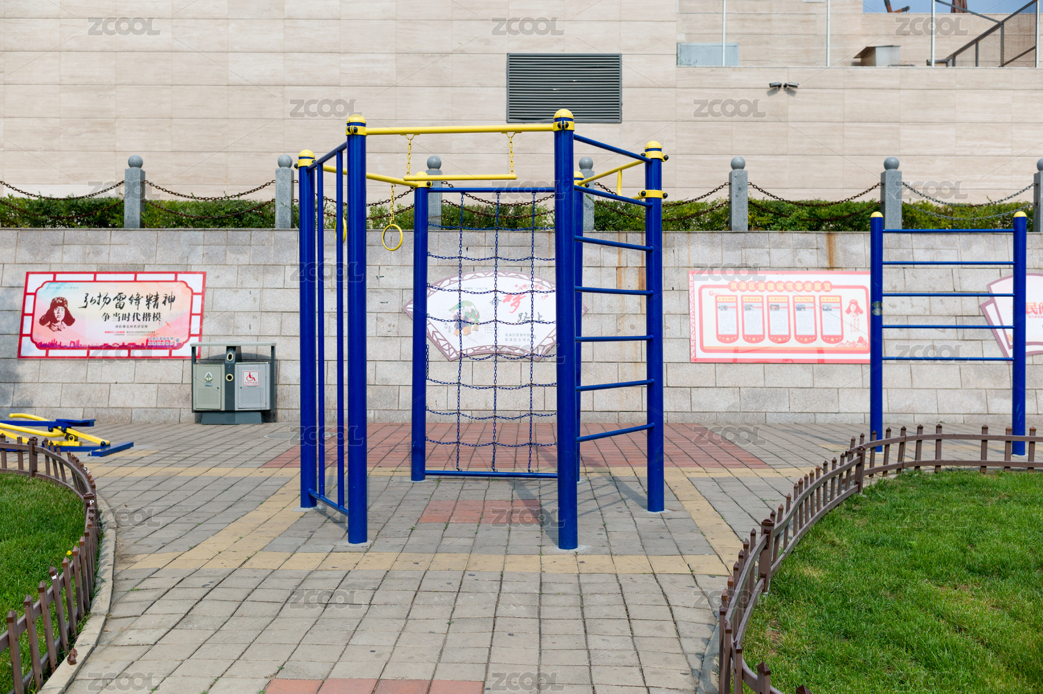 城市广场上的健身器材组合