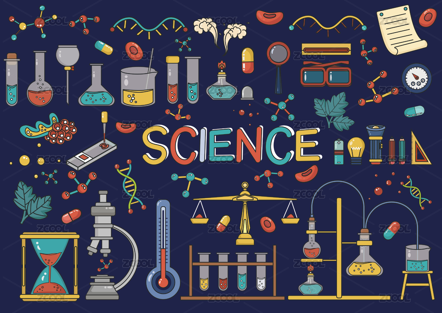 矢量手绘卡通涂鸦化学实验室试管器材元素