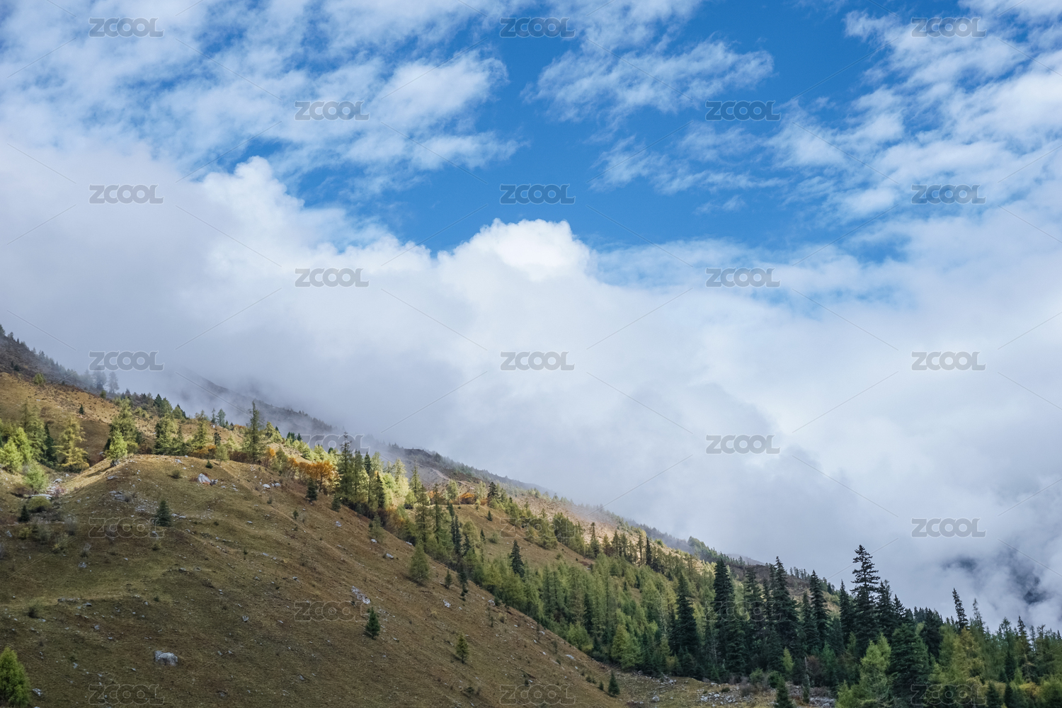 中国四川小金县四姑娘山双桥沟雪山彩林