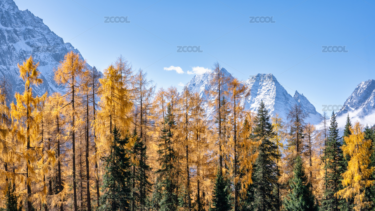 中国四川小金县四姑娘山双桥沟秋天雪山风光