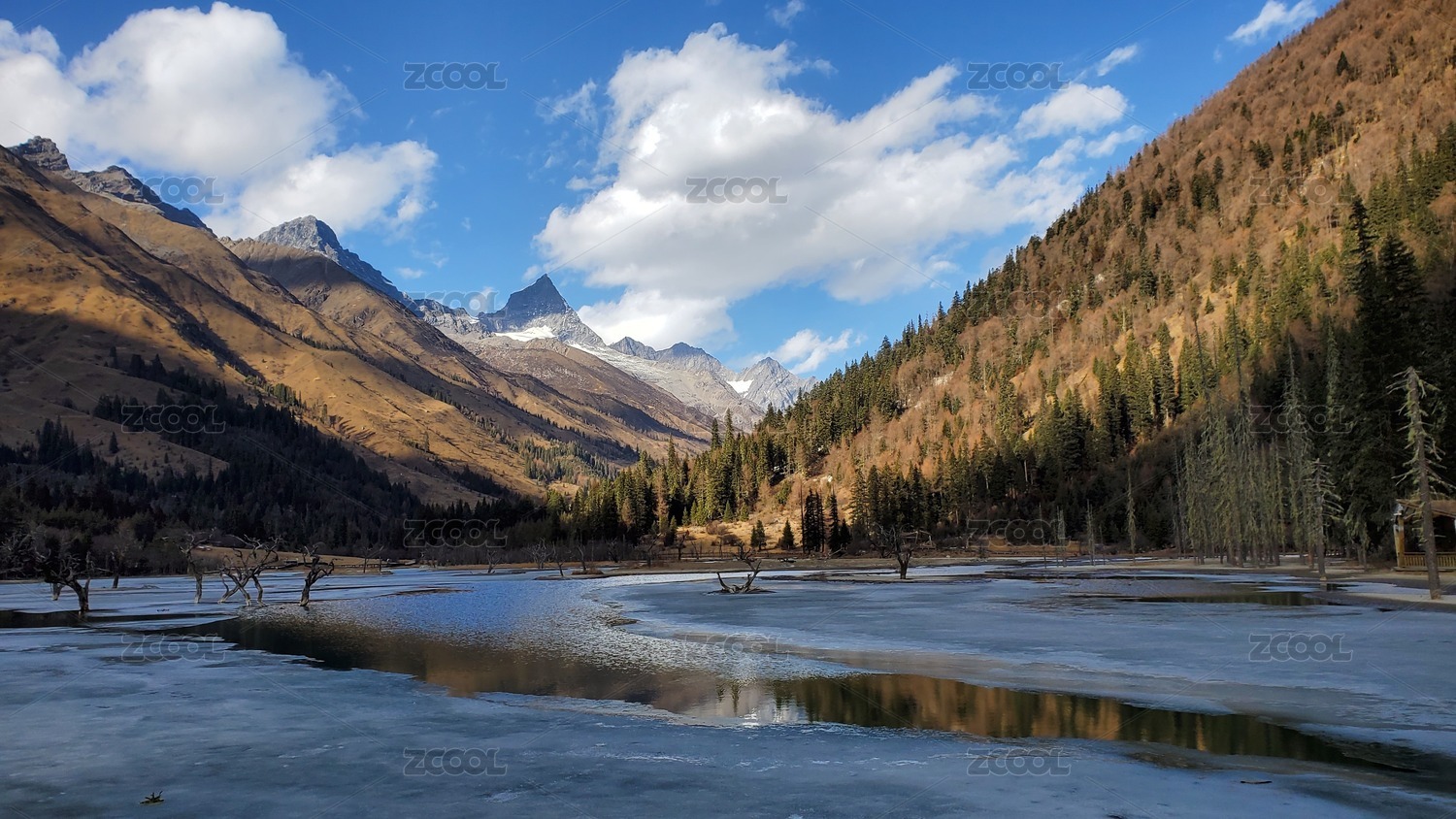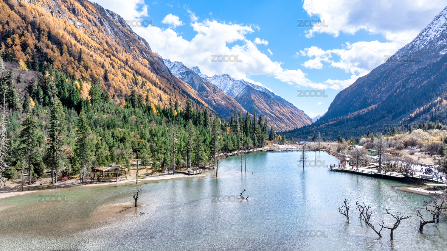 四川四姑娘山双桥沟秋天的湖泊和水流