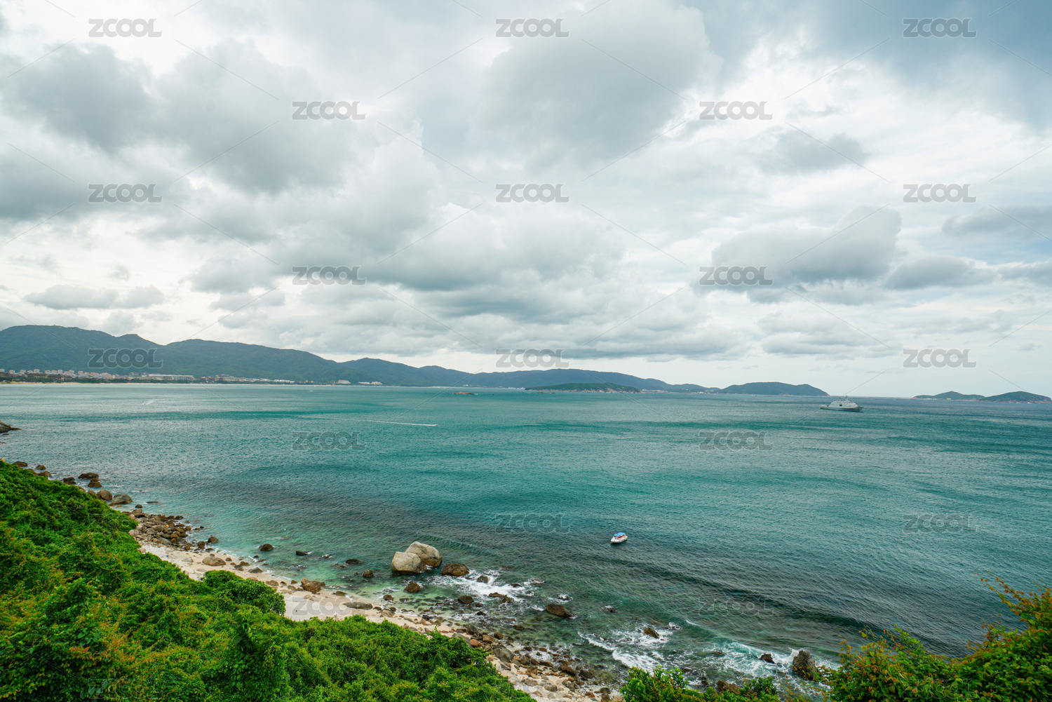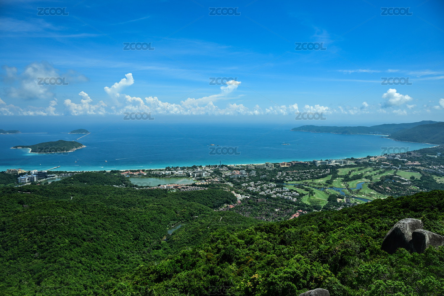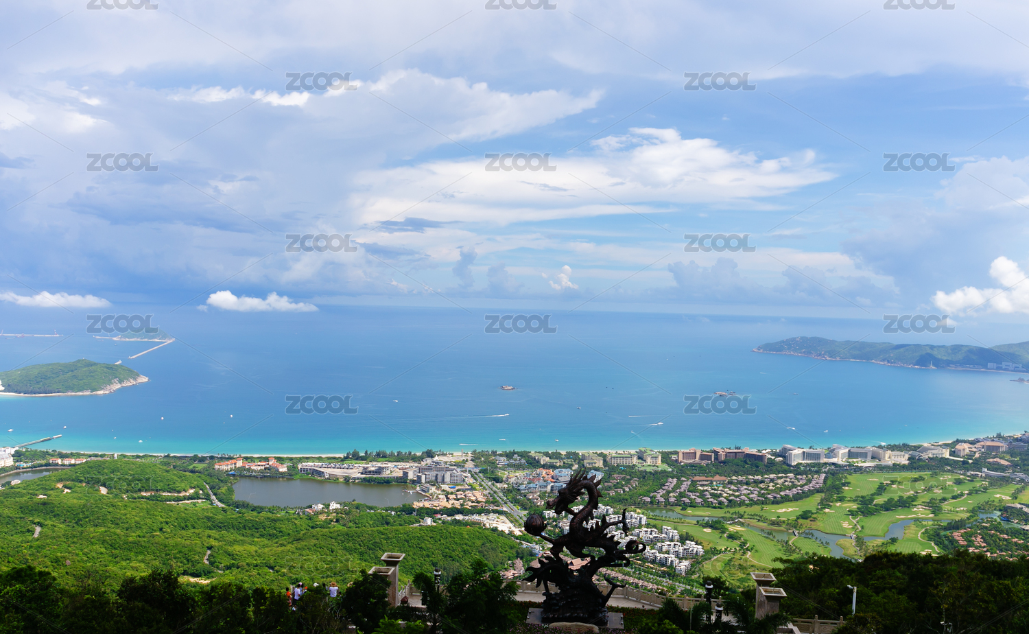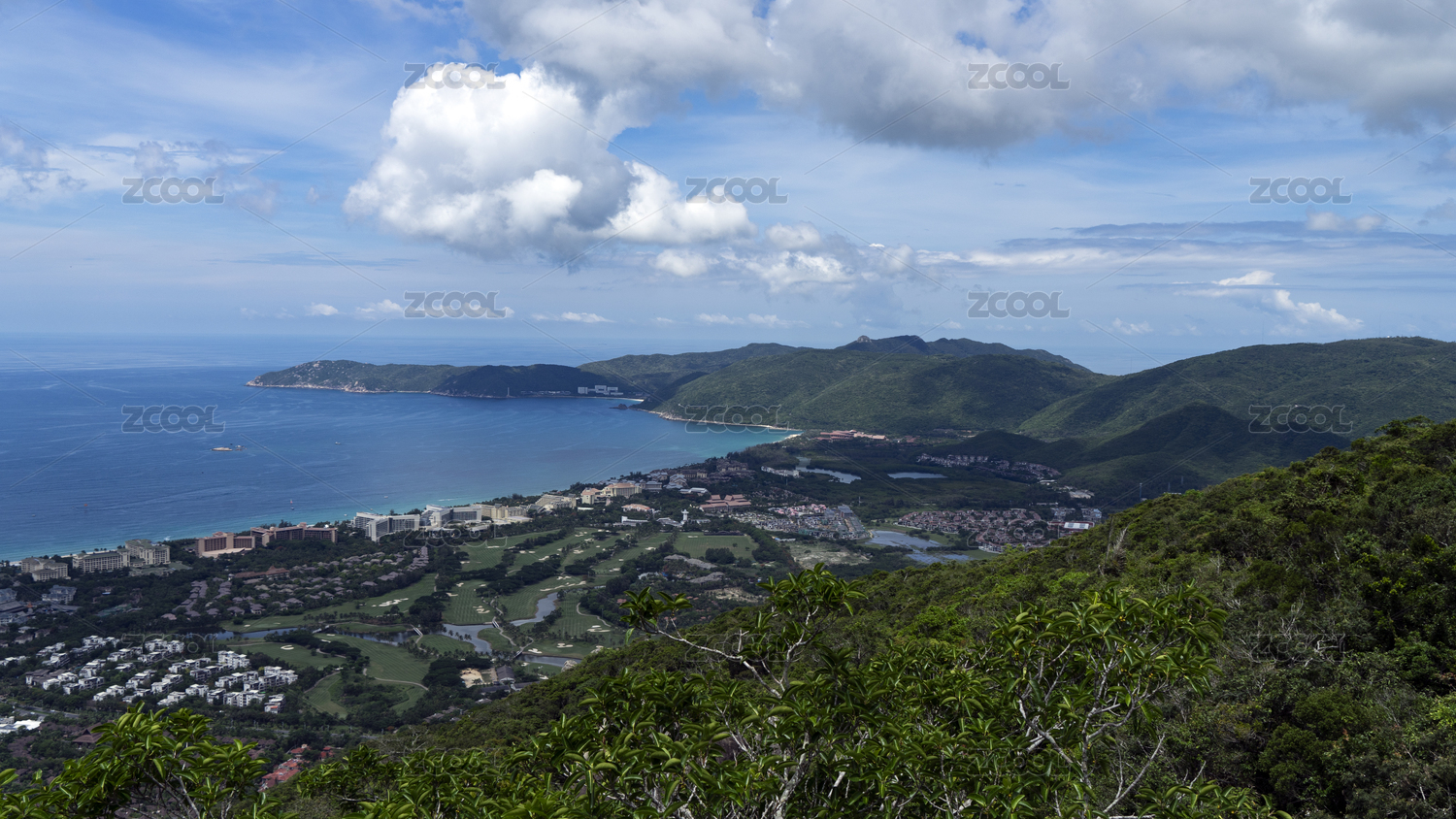 在山顶俯瞰海南亚龙湾全景