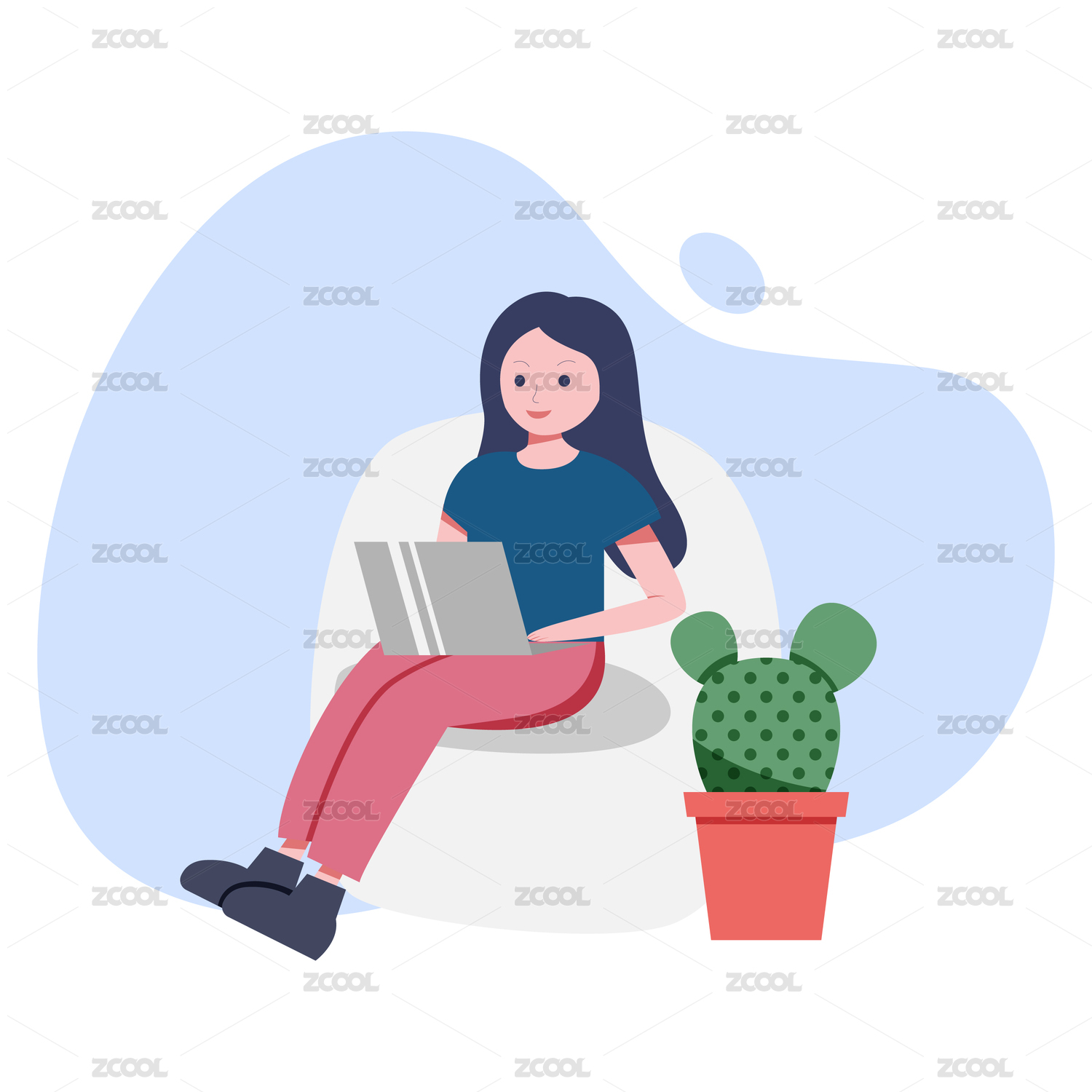 矢量互联网插画抱着电脑办公的女人