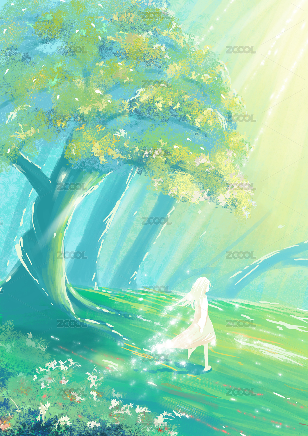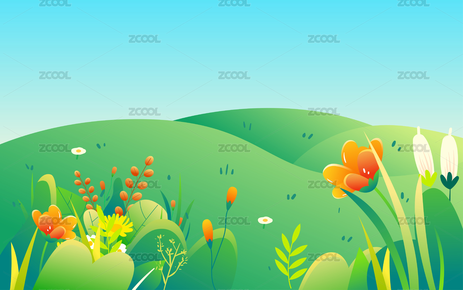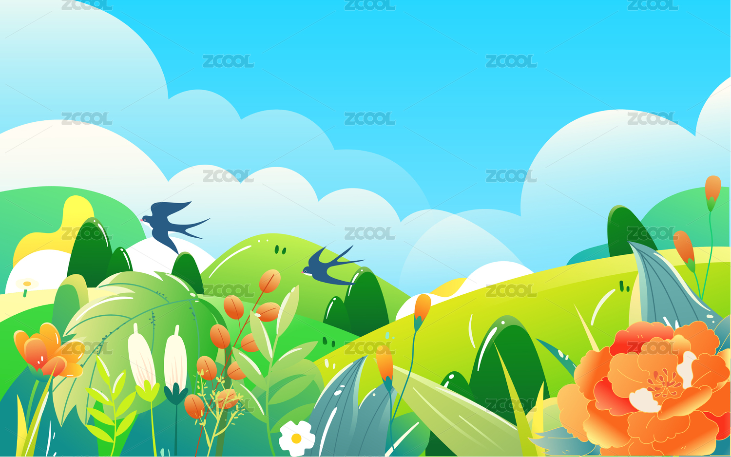 卡通立春踏青春季瀑布自然风景背景矢量插画