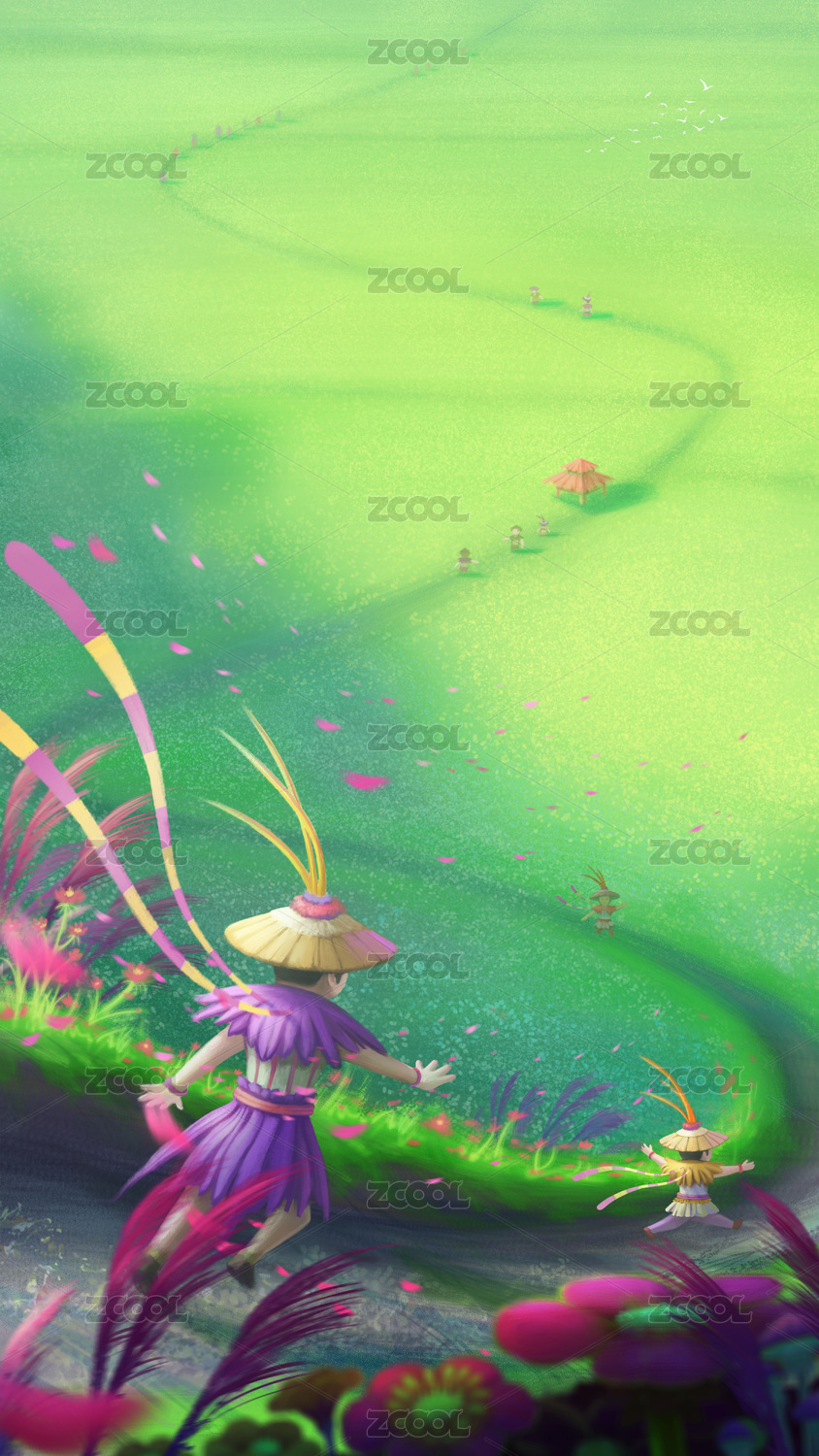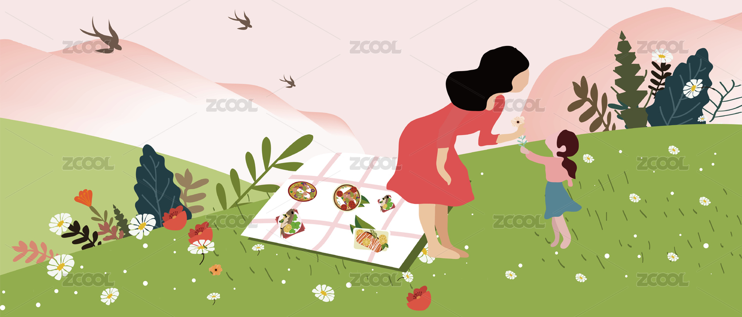 卡通立春放风筝出行踏青春季风景背景矢量插画