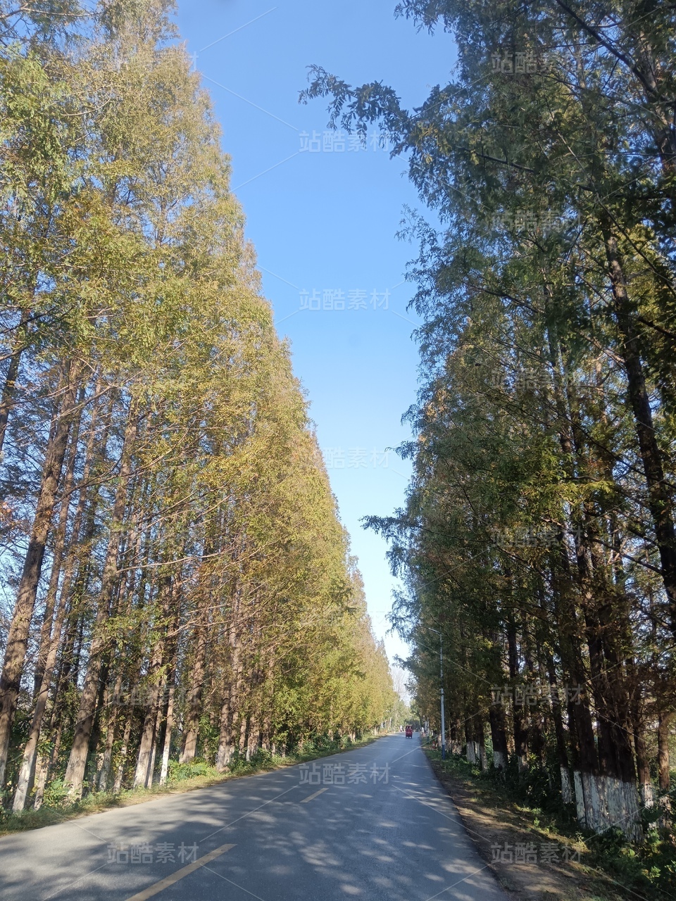 迎着阳光,走在宽阔的马路上,留下一个背影