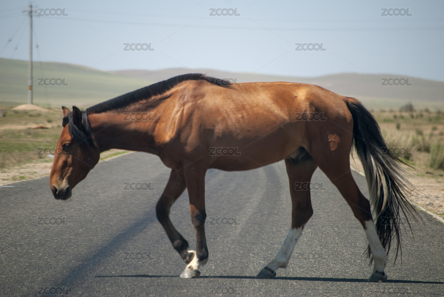 中国甘肃酒泉敦煌莫高窟一条沙漠戈壁滩上的柏油马路