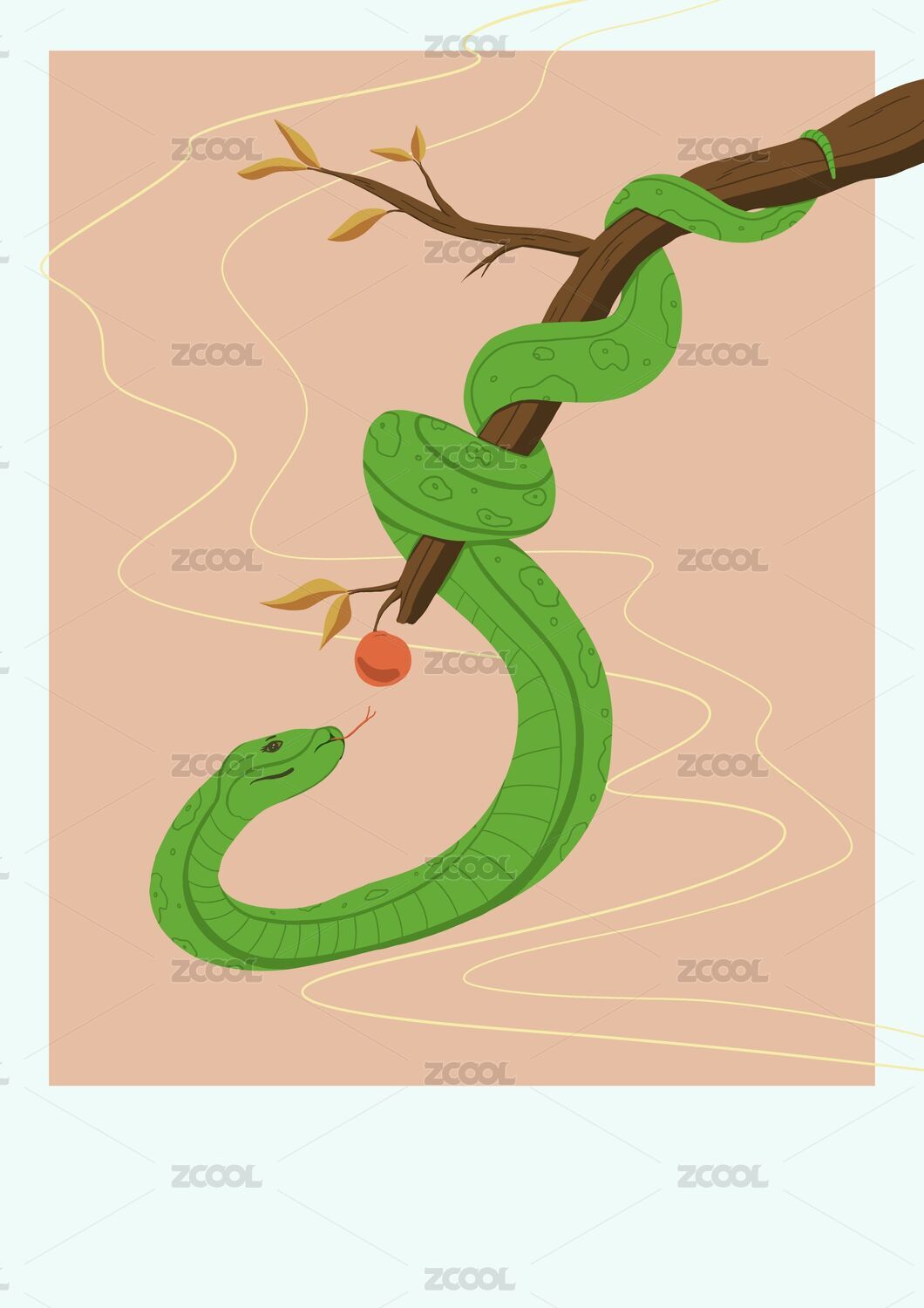 巳蛇国潮十二生肖时尚潮流印花纹样矢量插画