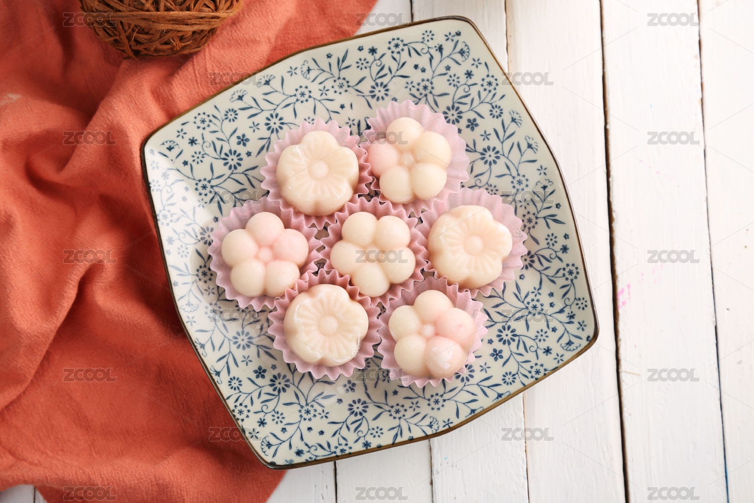 中国风背景的健康早餐水晶饼静物特写
