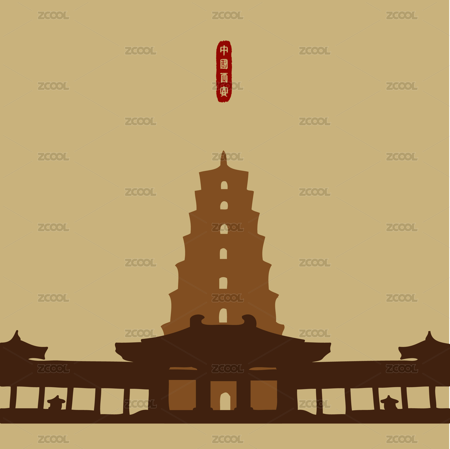 中国古都西安慈恩寺大雁塔 古典建筑矢量