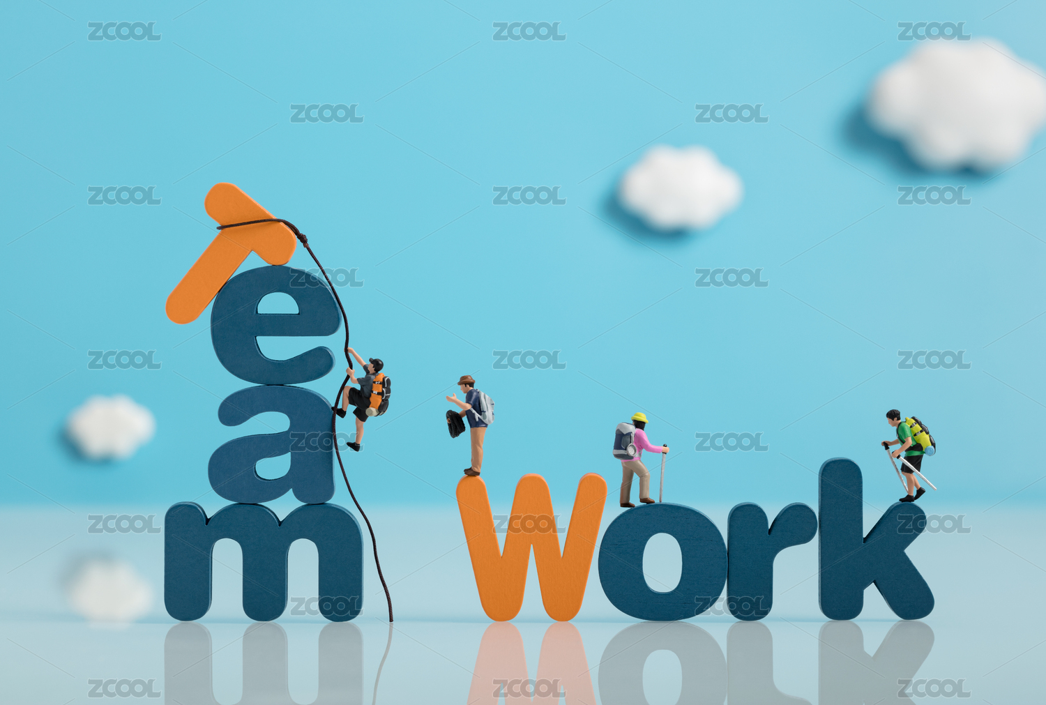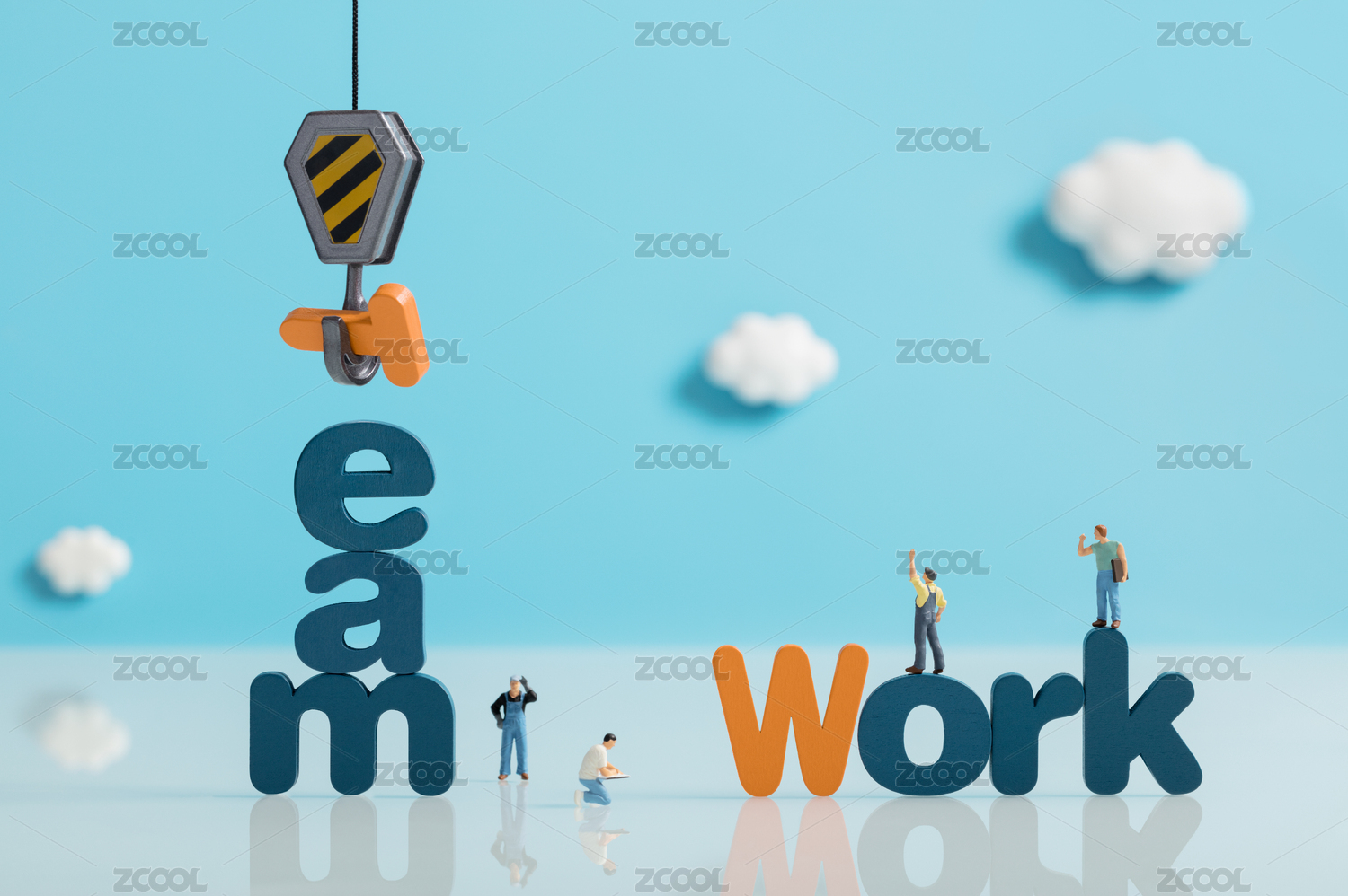 微缩创意字母团队协作与施工的工程队
