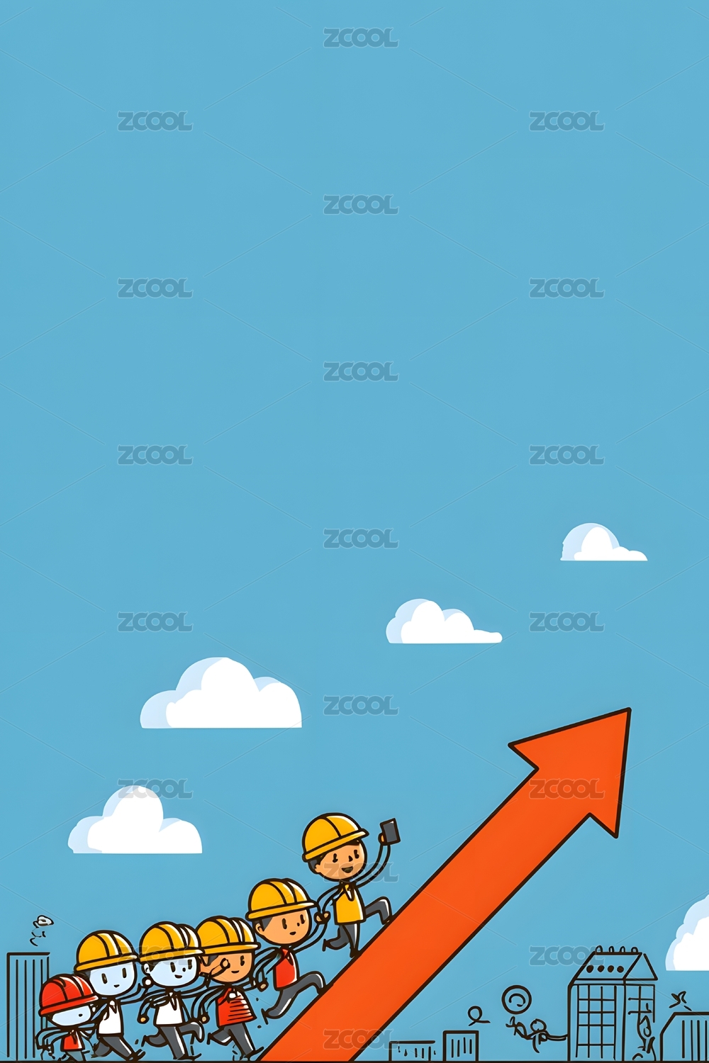 建筑团队攀登上升箭头 建设成功之路