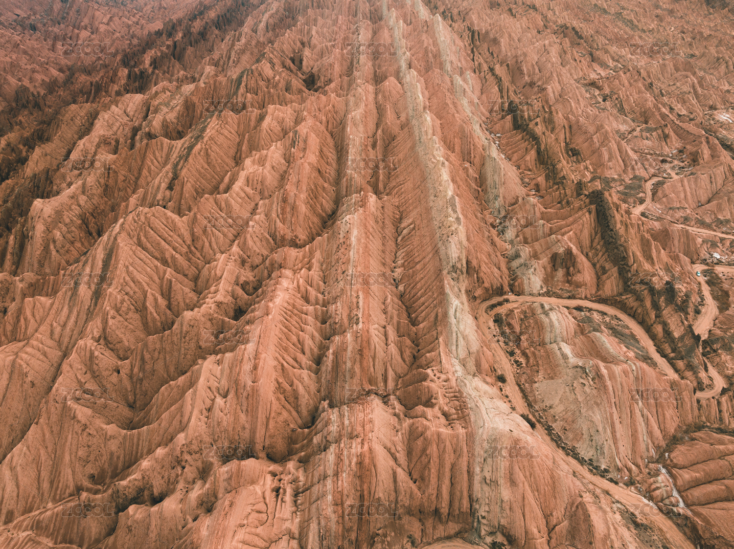中国新疆阿克苏库车红山石林航拍风景照片