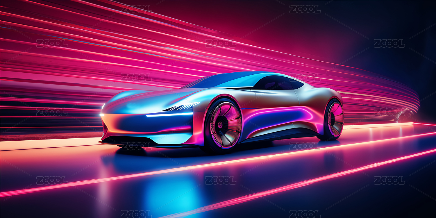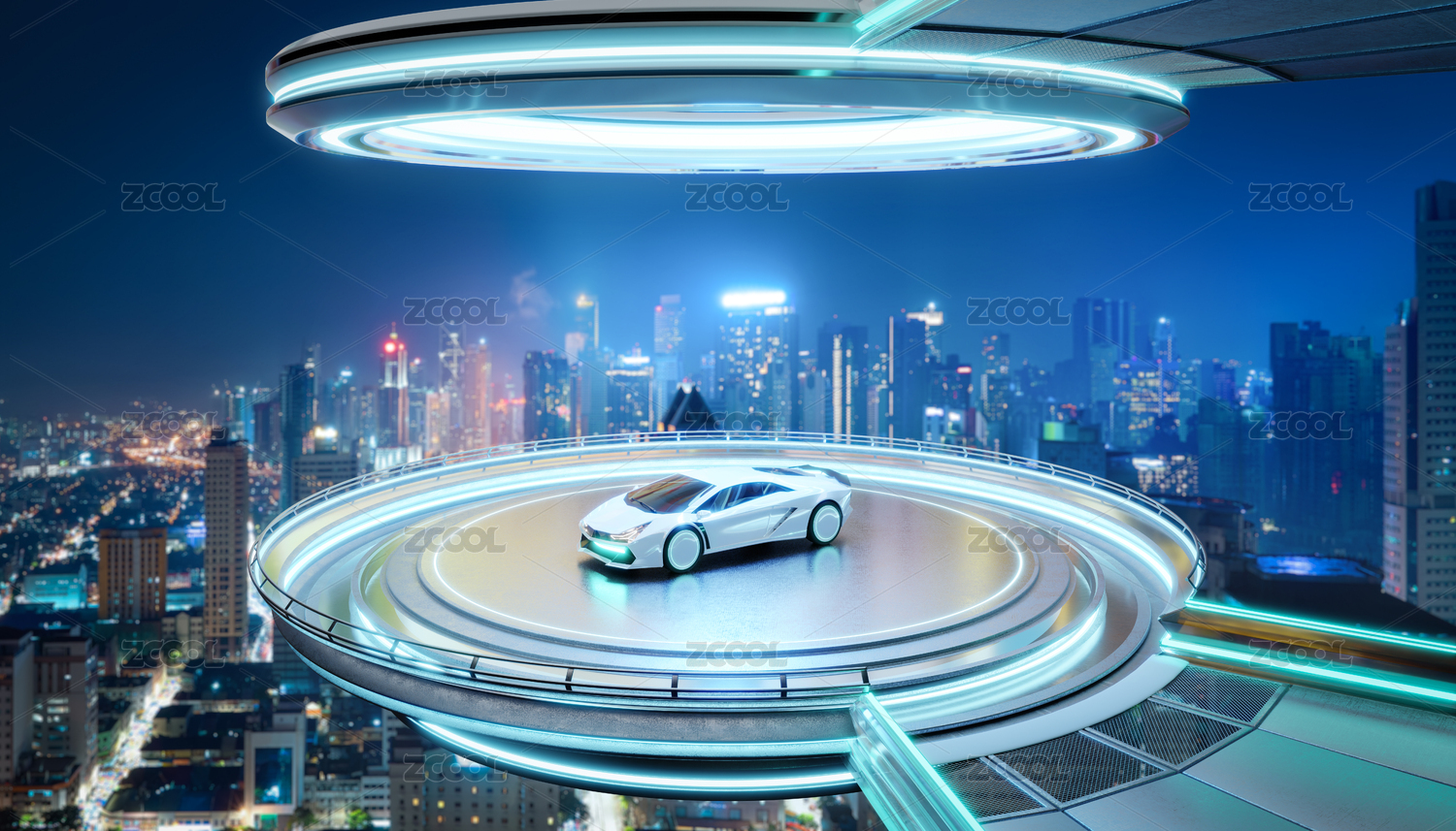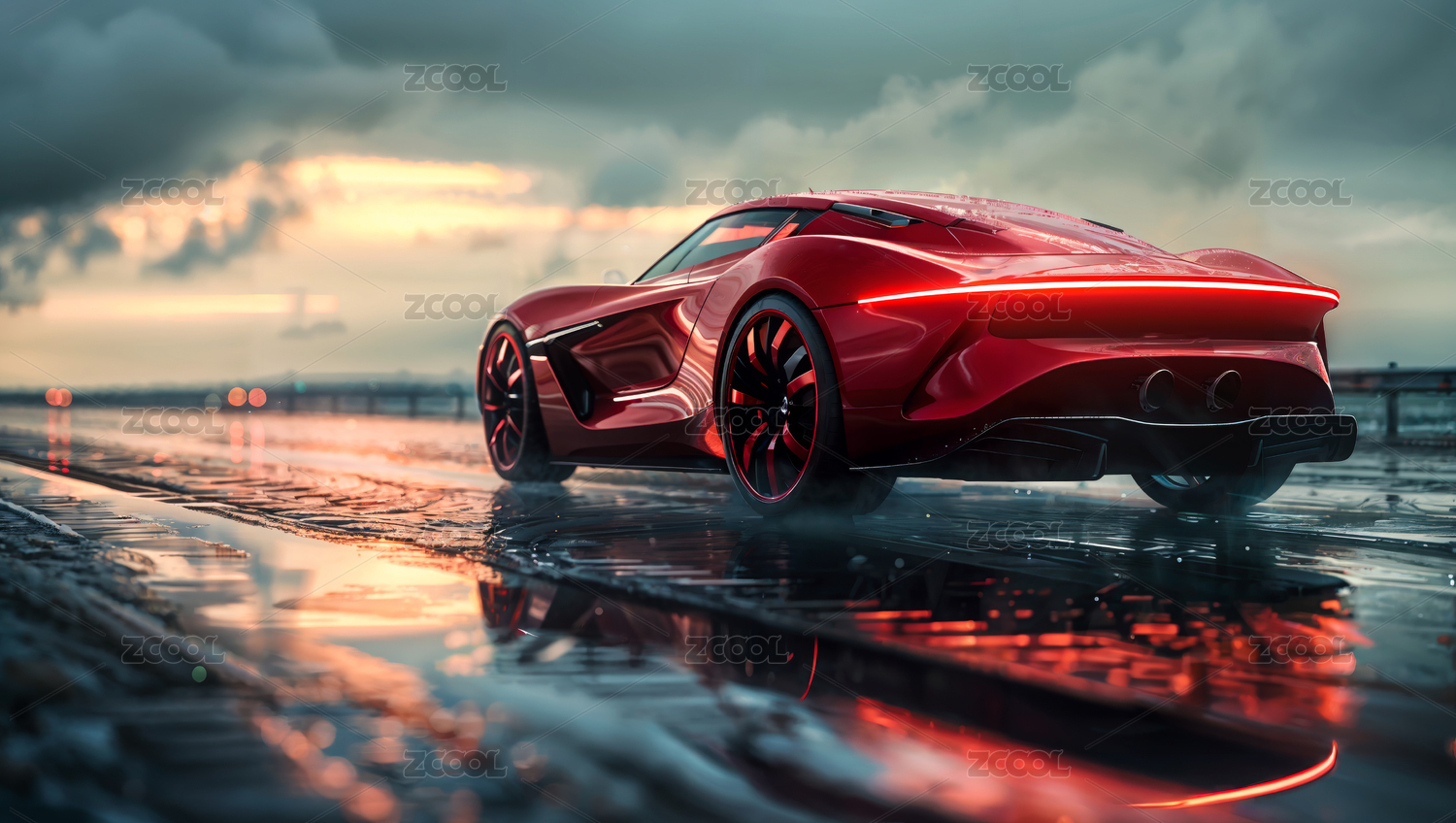 蓝天白云下城市背景中的超酷红色跑车概念车