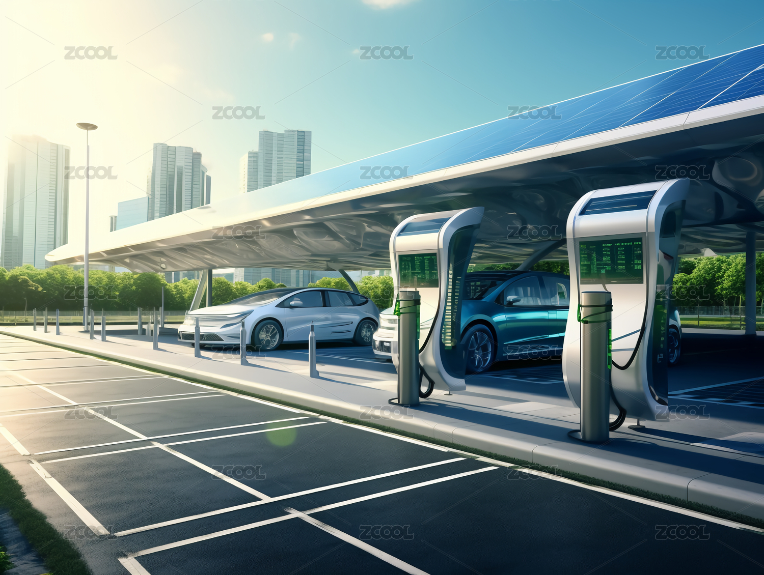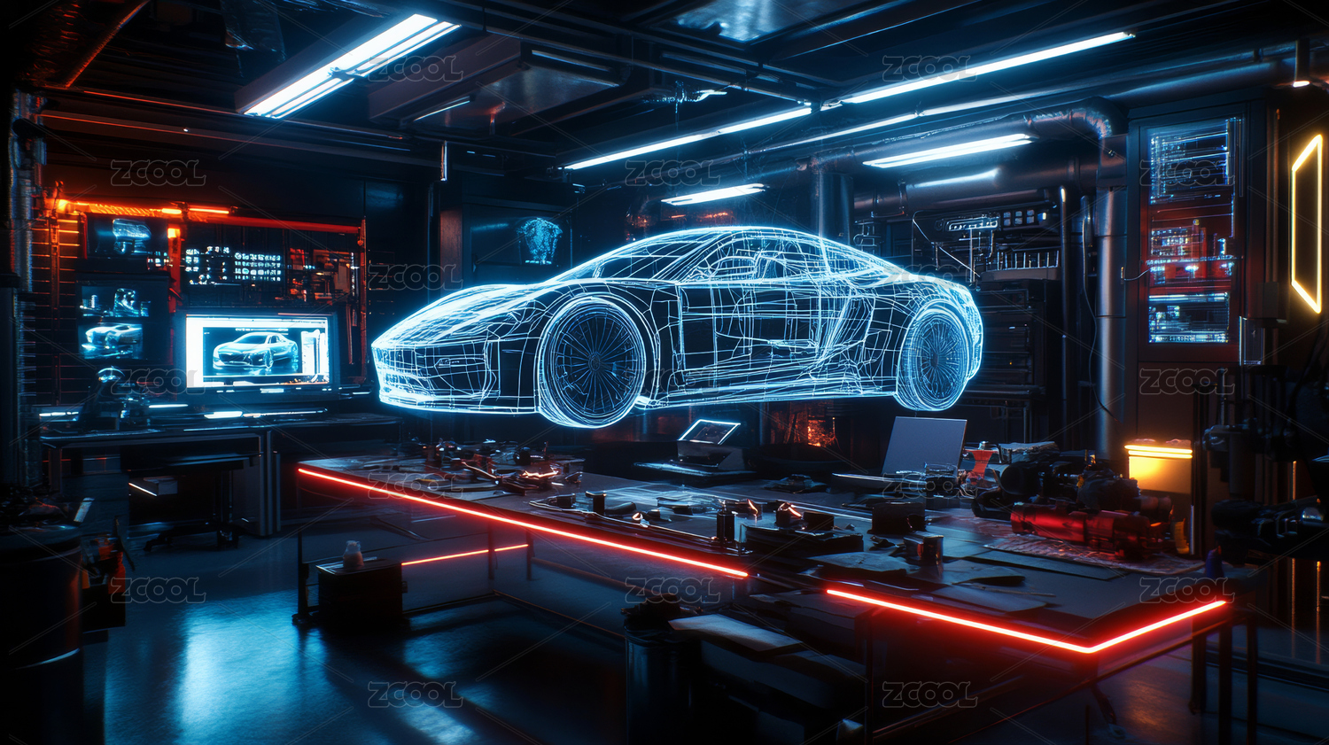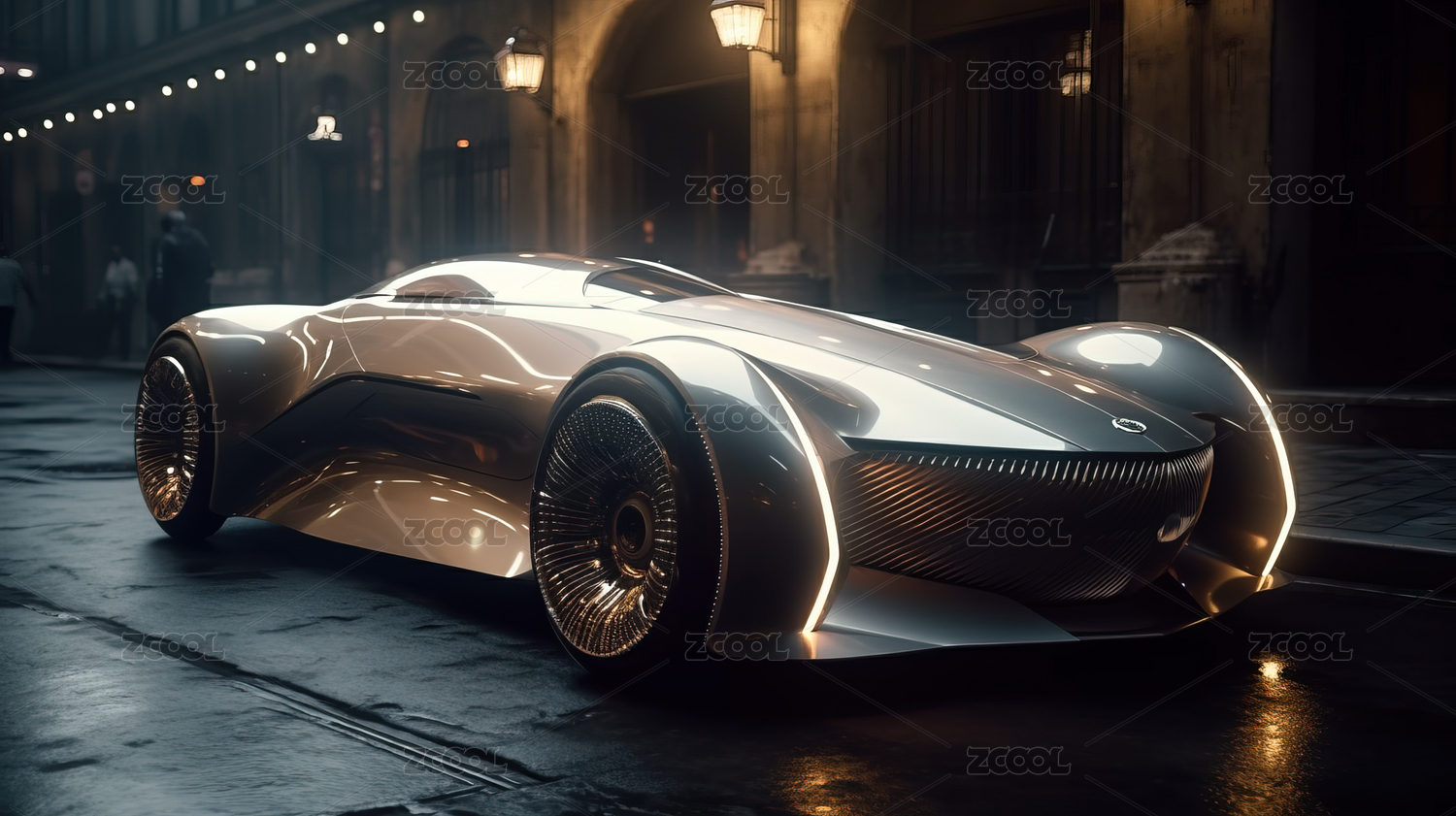 蓝天白云下城市背景中的超酷红色跑车概念车