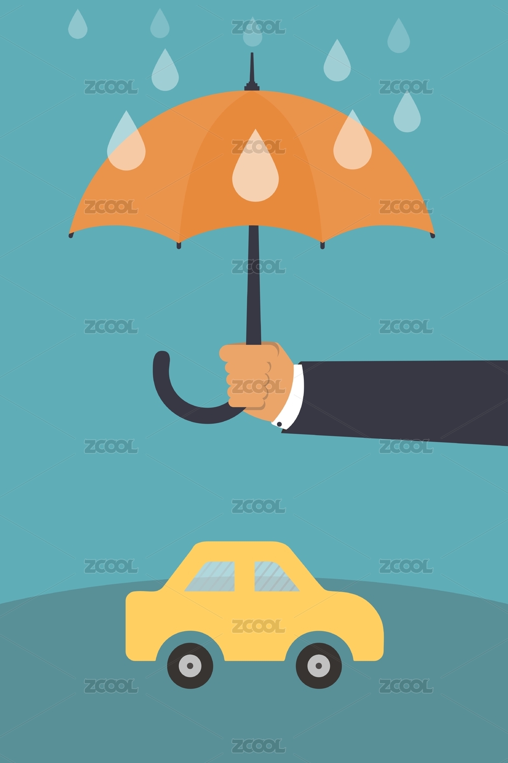 手撑伞保护汽车,安全概念车,乘车安全,汽车保险,保险公司概念矢量图