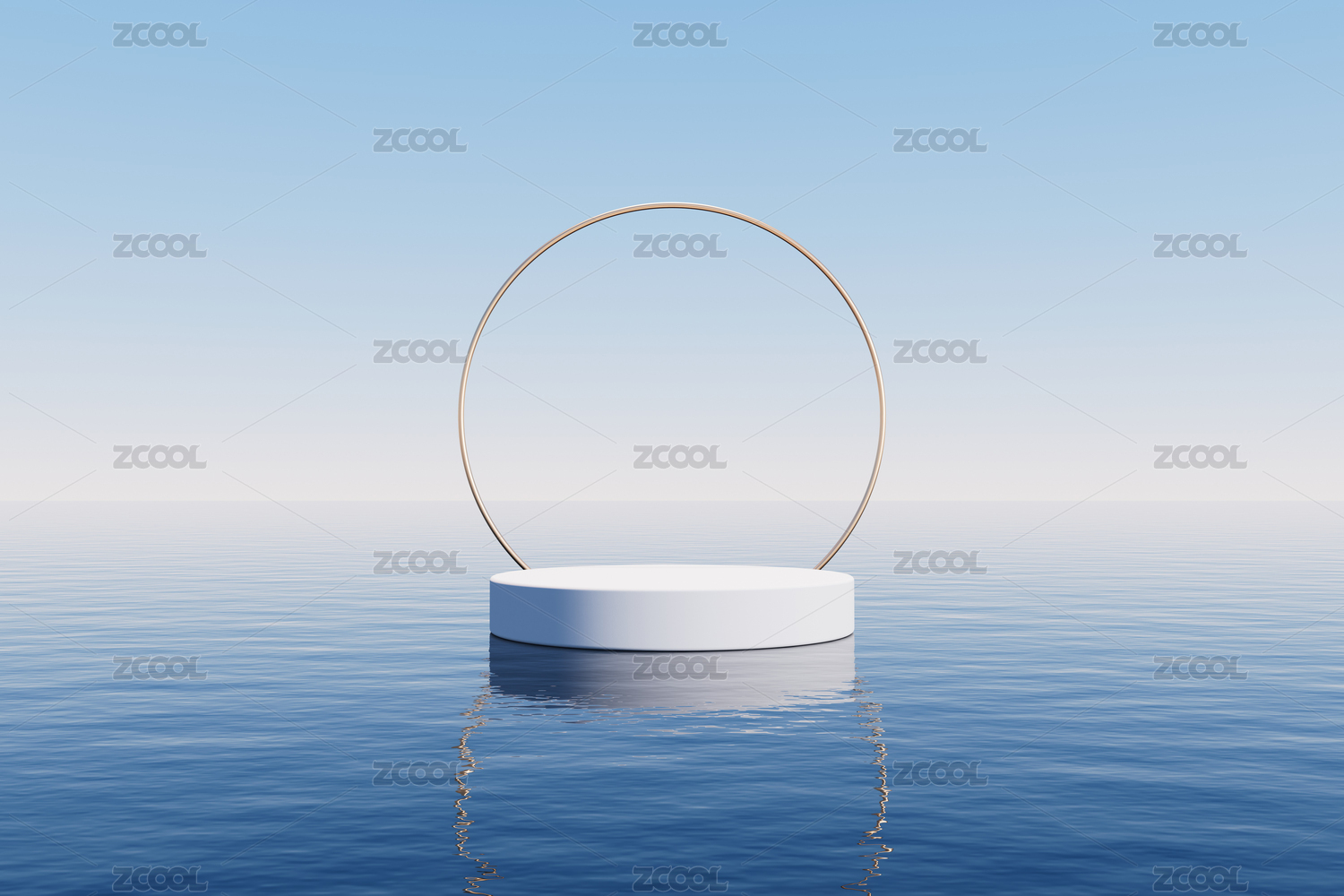 简约蓝色光滑流畅背景中的圆形产品展示台