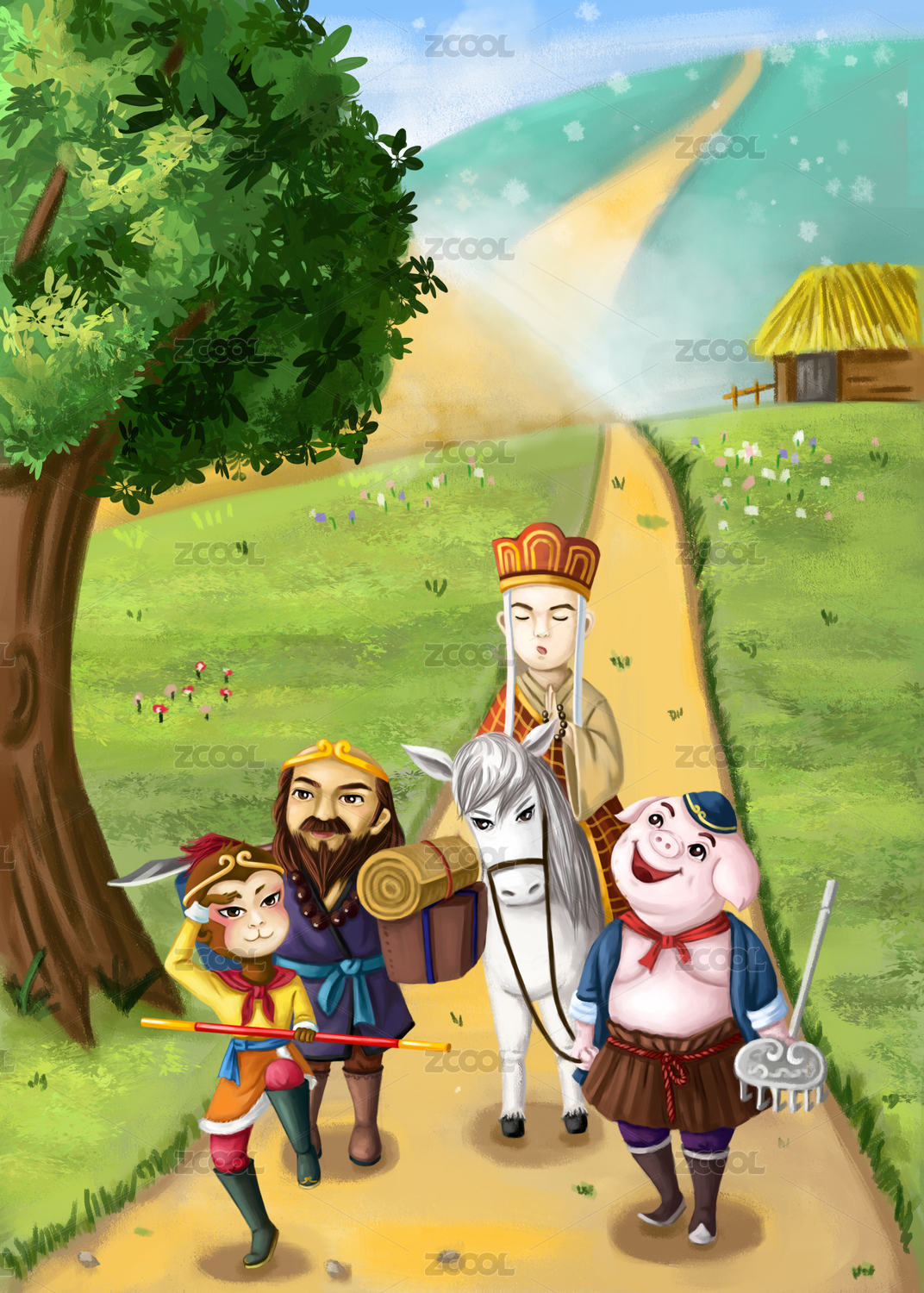 手绘卡通西游记人物插画
