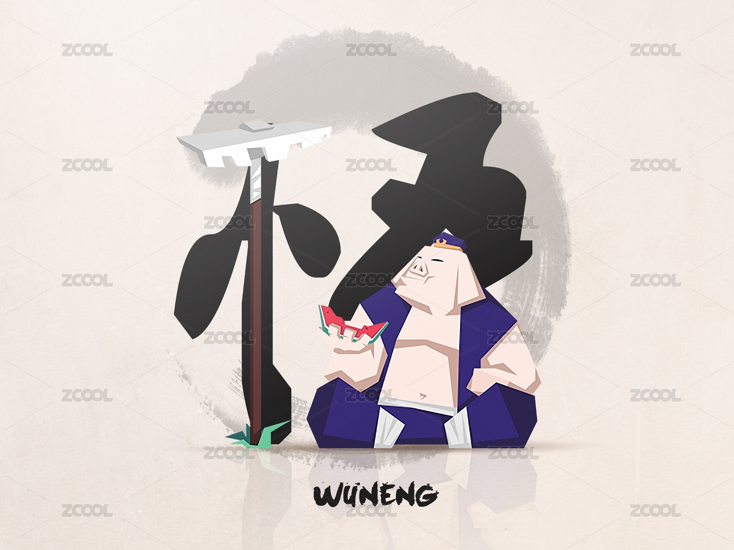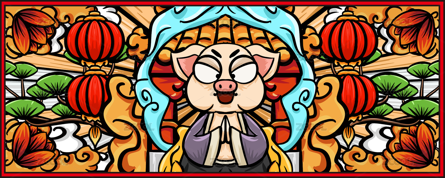 卡通国潮猪八戒插画