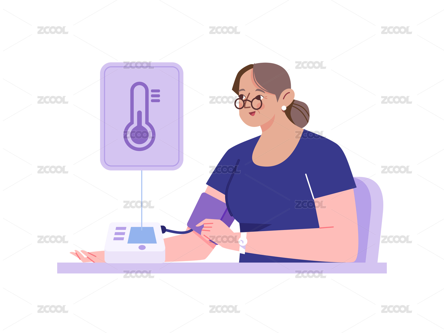 用电子血压仪测量血压医疗健康矢量插画