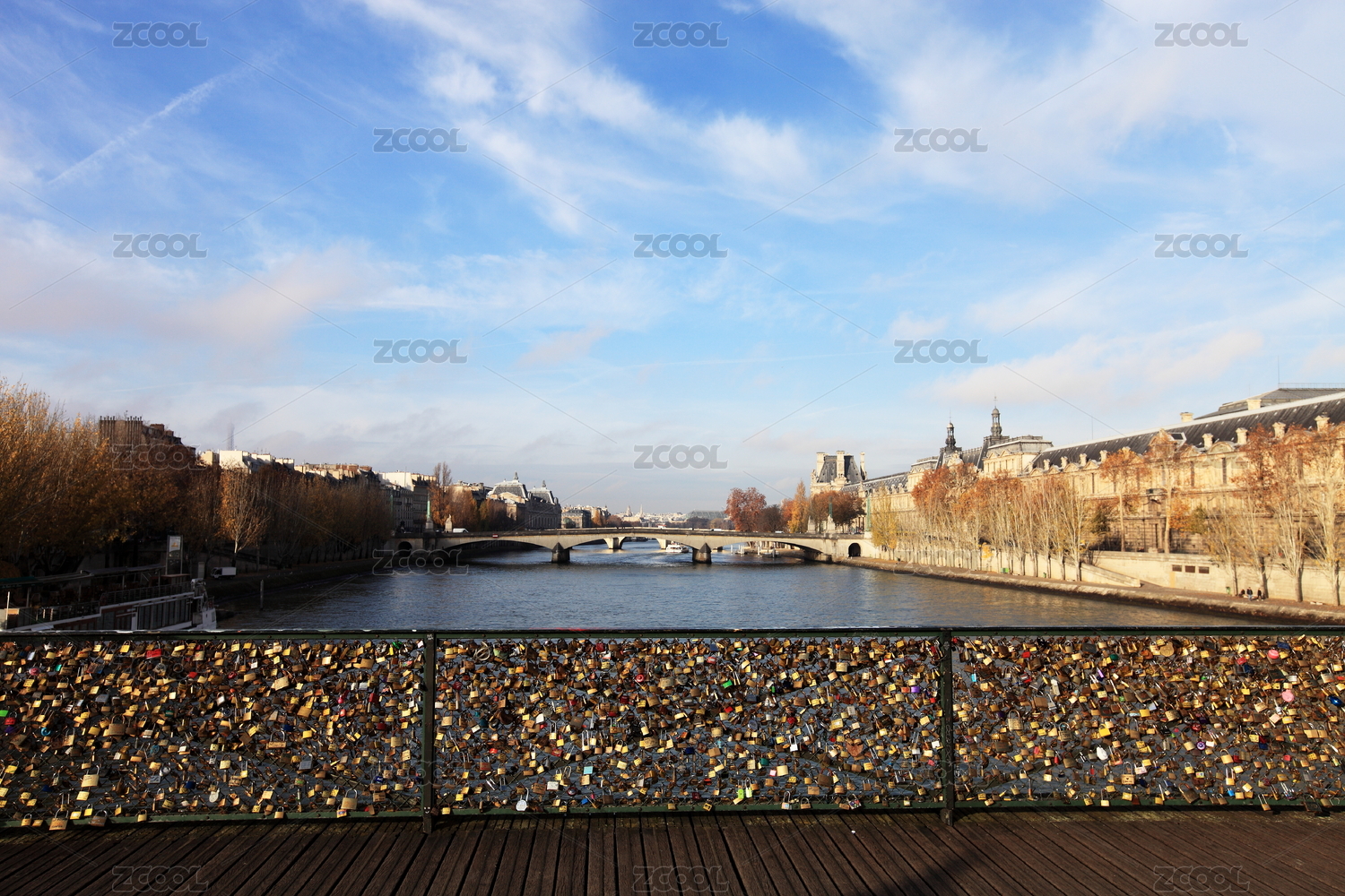 挂在巴黎塞纳河锁桥上的爱心锁