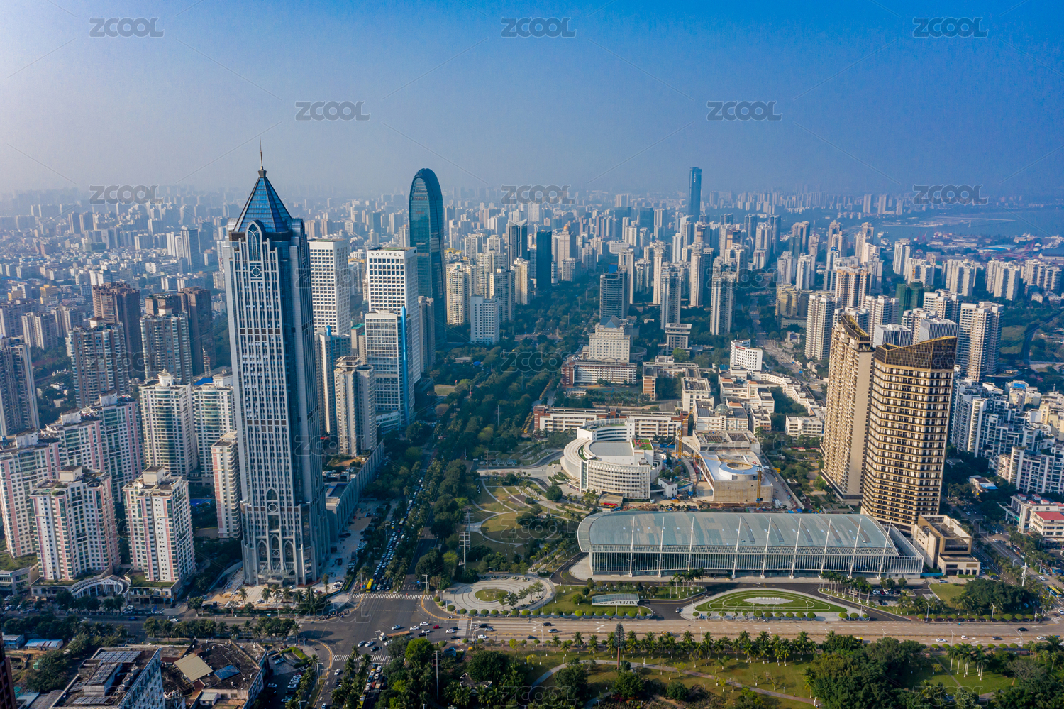 航拍海南海口滨海大道高楼建筑群高层写字楼