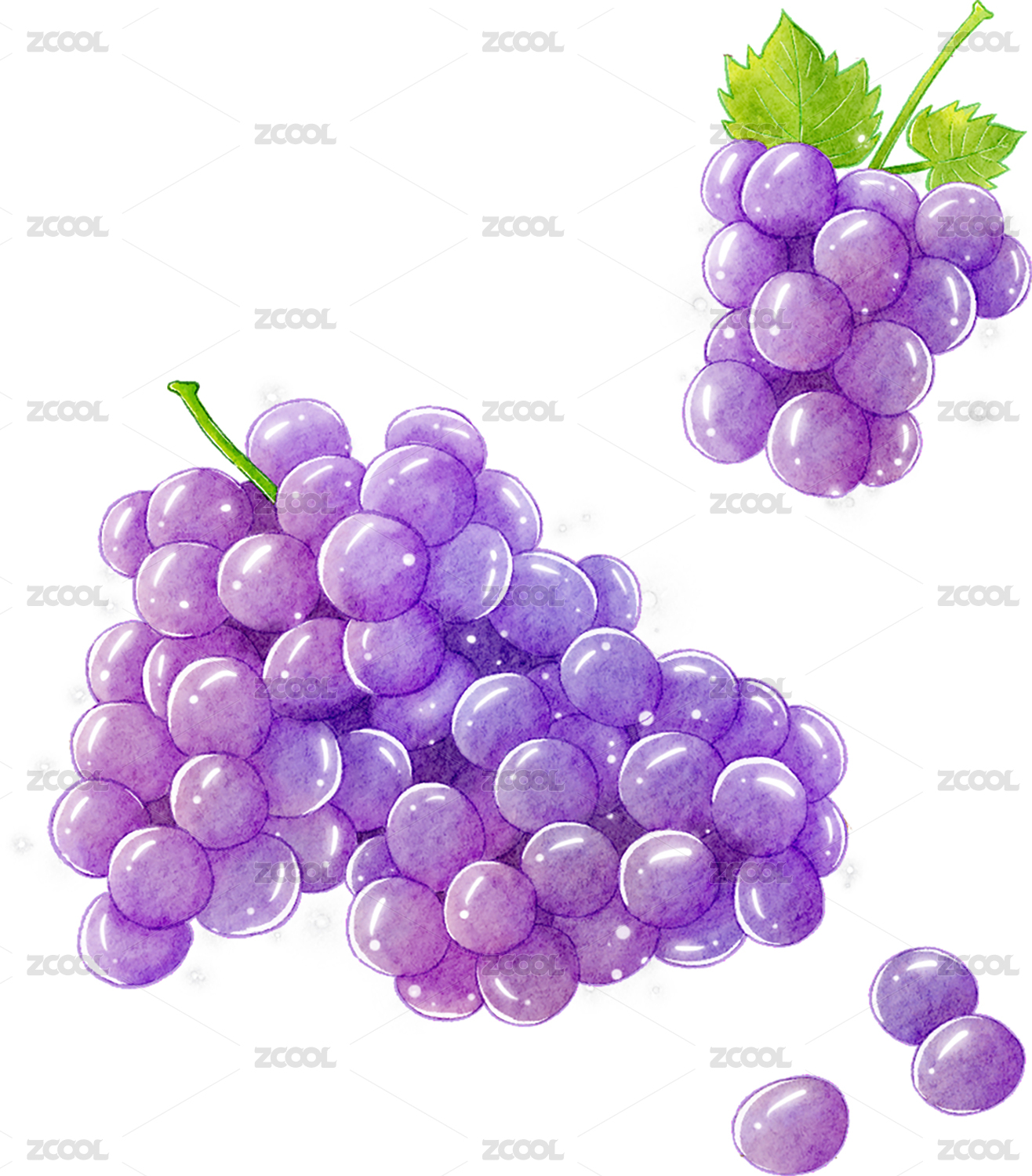 矢量黑白线稿水果元素葡萄提子装饰设计插画