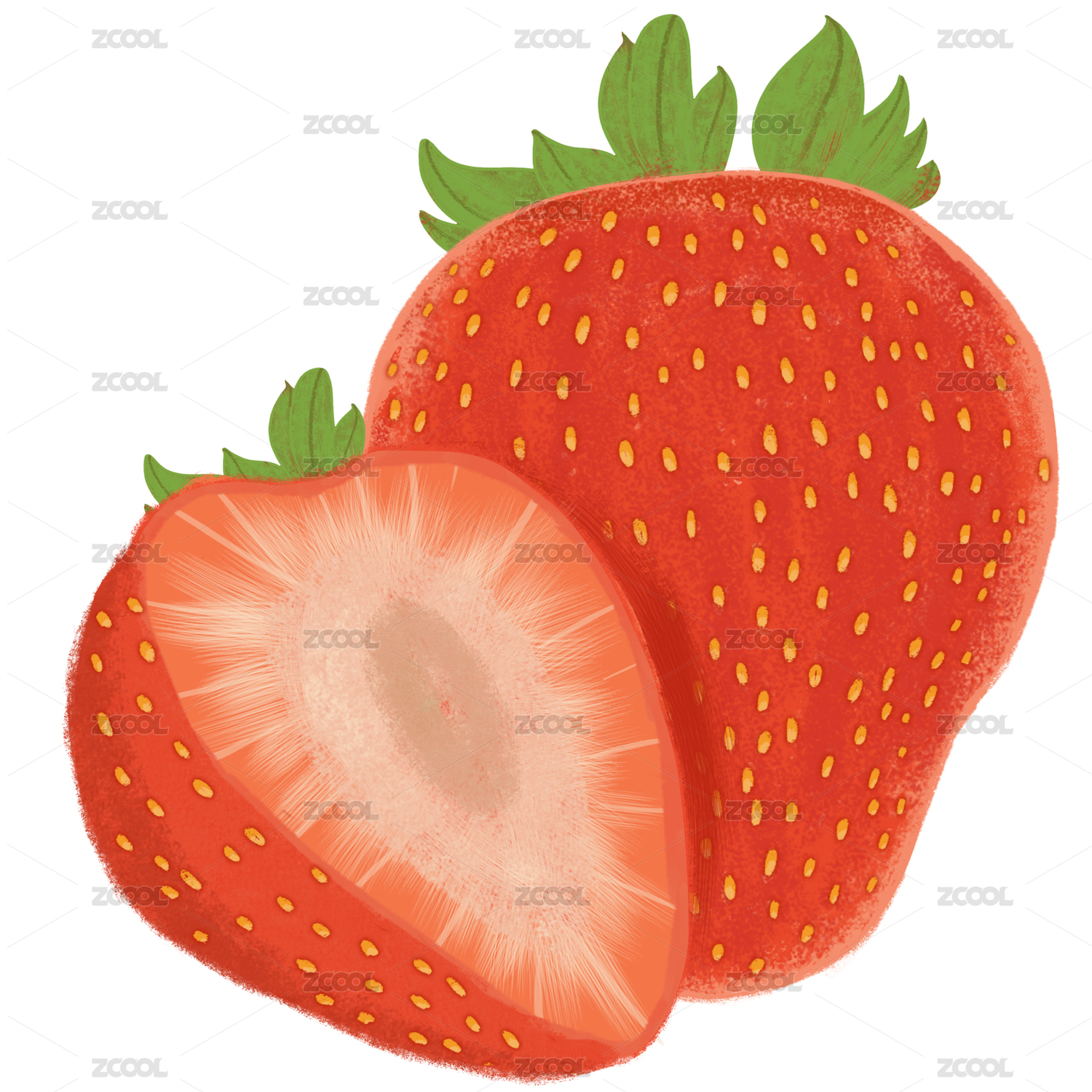 数位板绘画草莓水果元素装饰画素材平涂插画