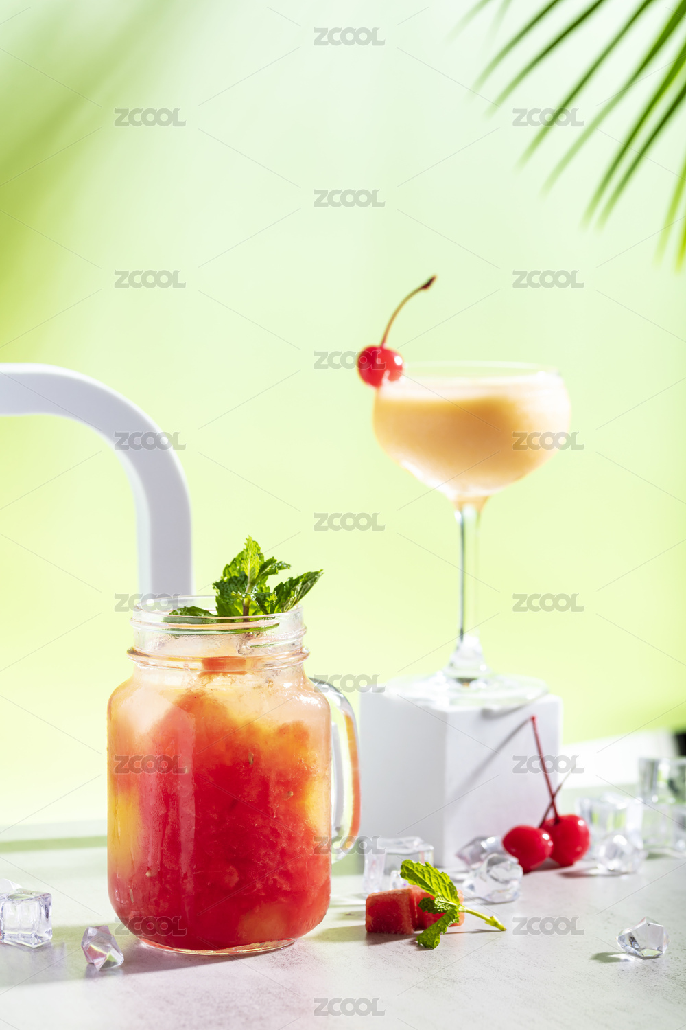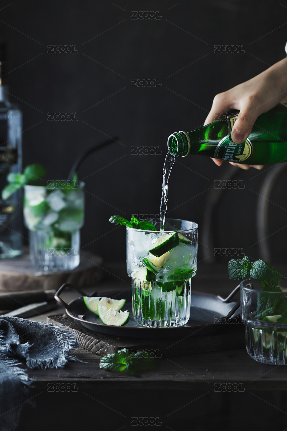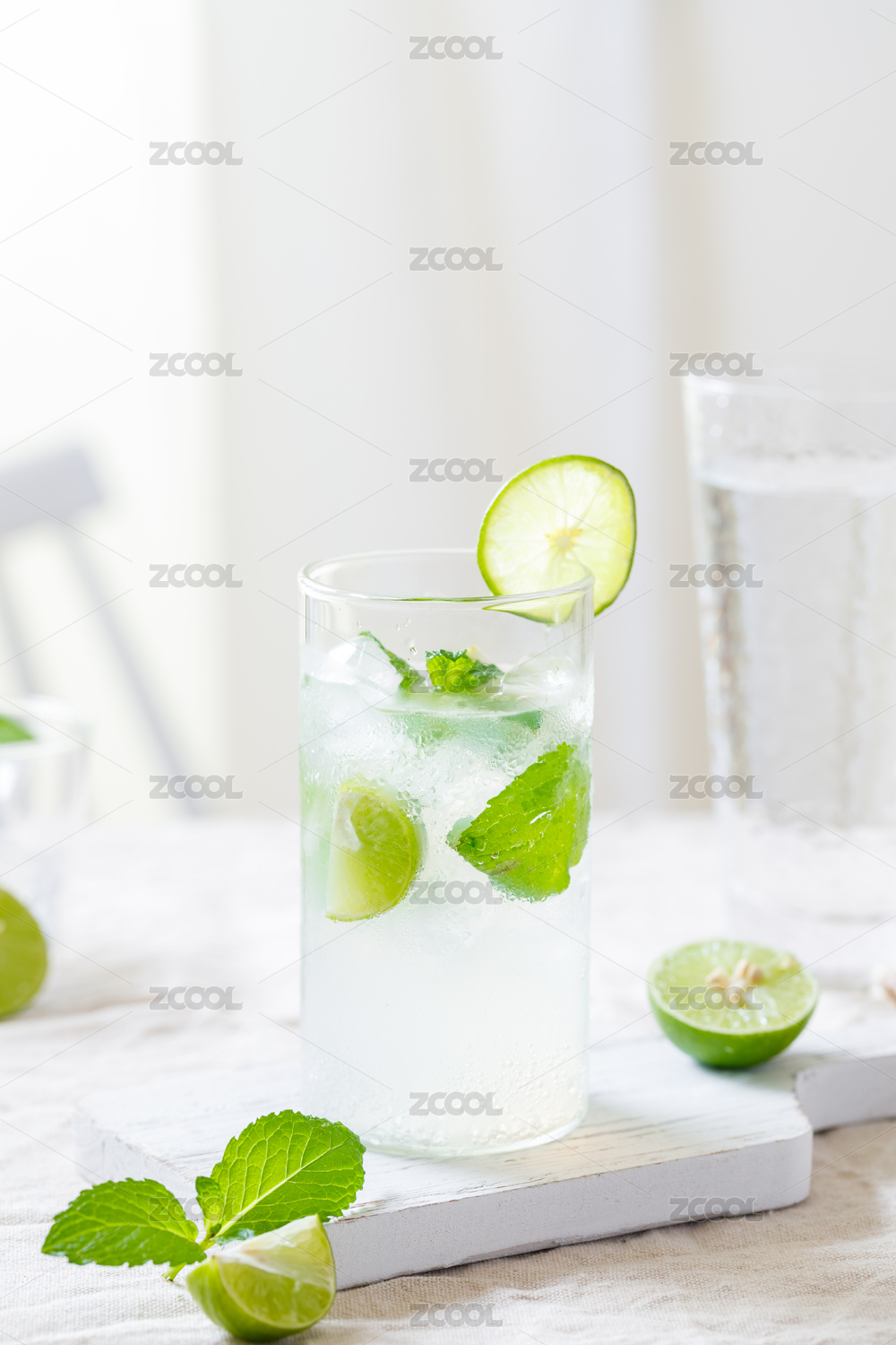 夏日饮品莫吉托鸡尾酒,薄荷柠檬