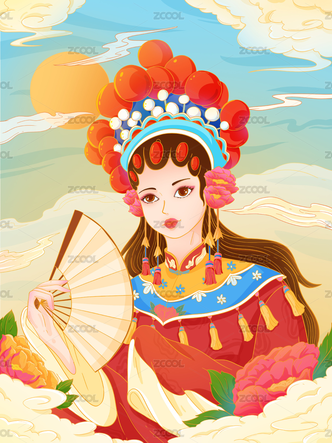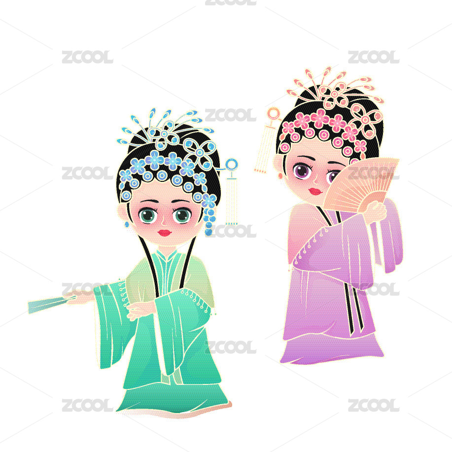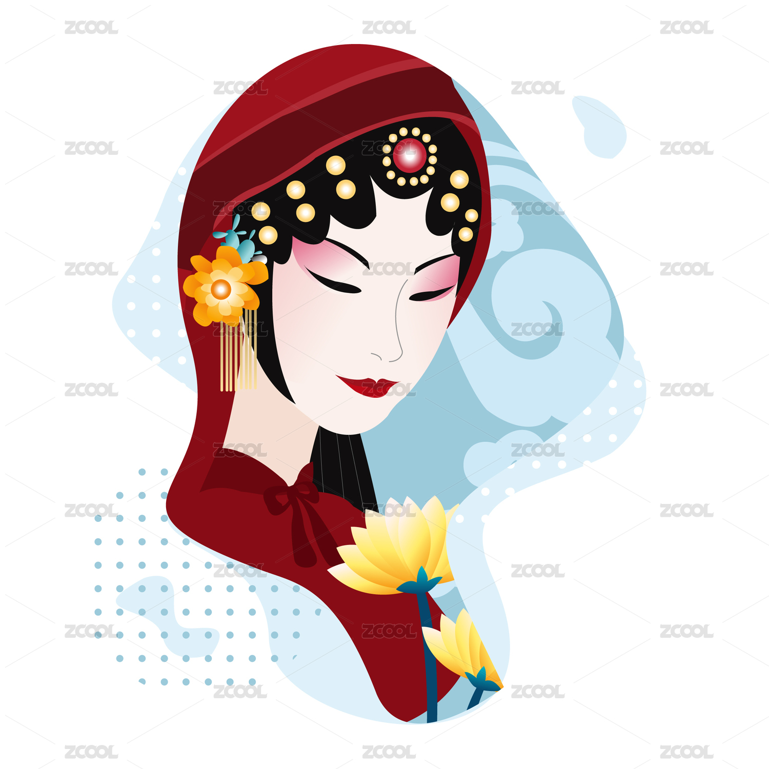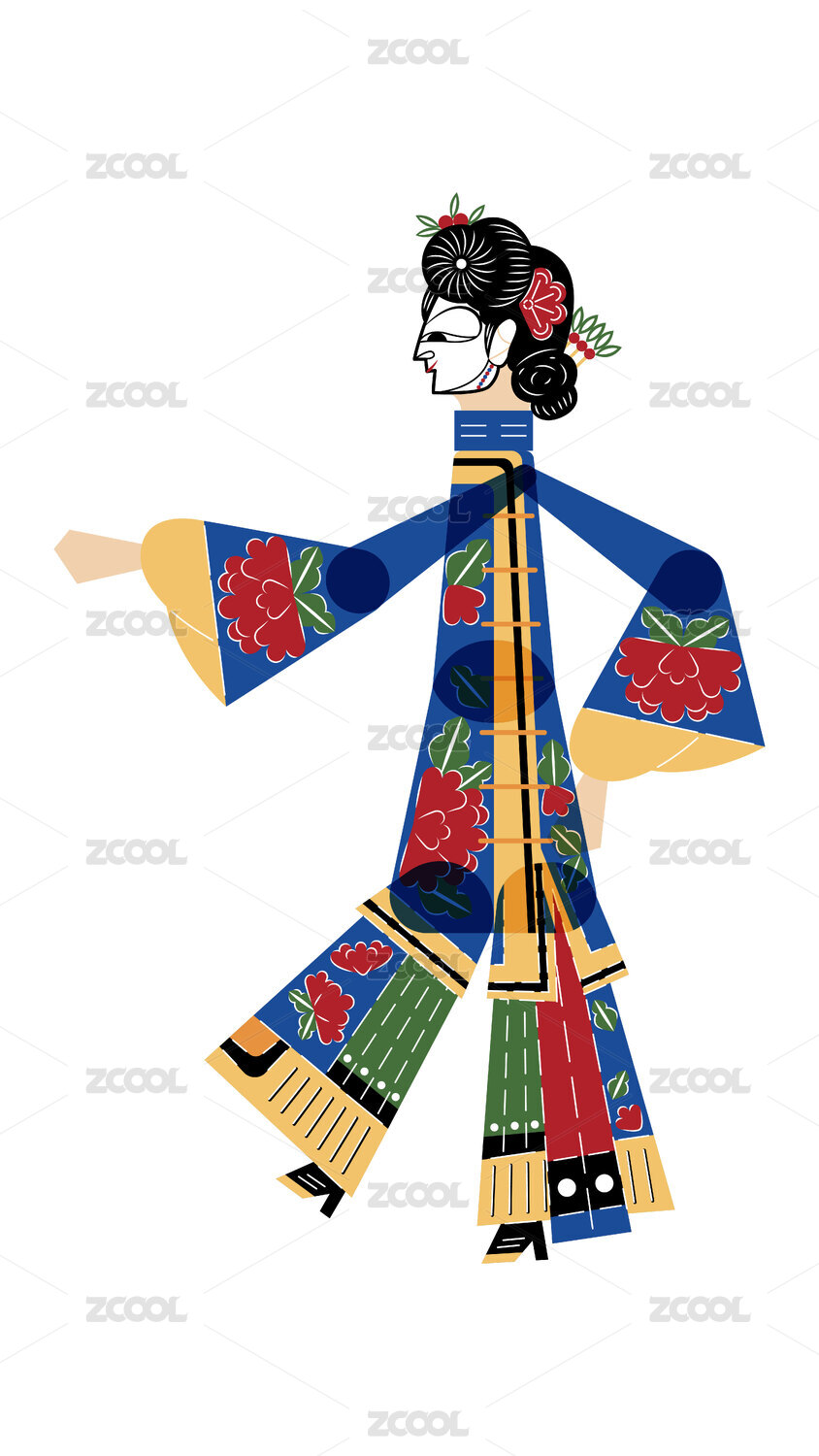 秦腔戏曲女性人物 旦角花旦手绘插画