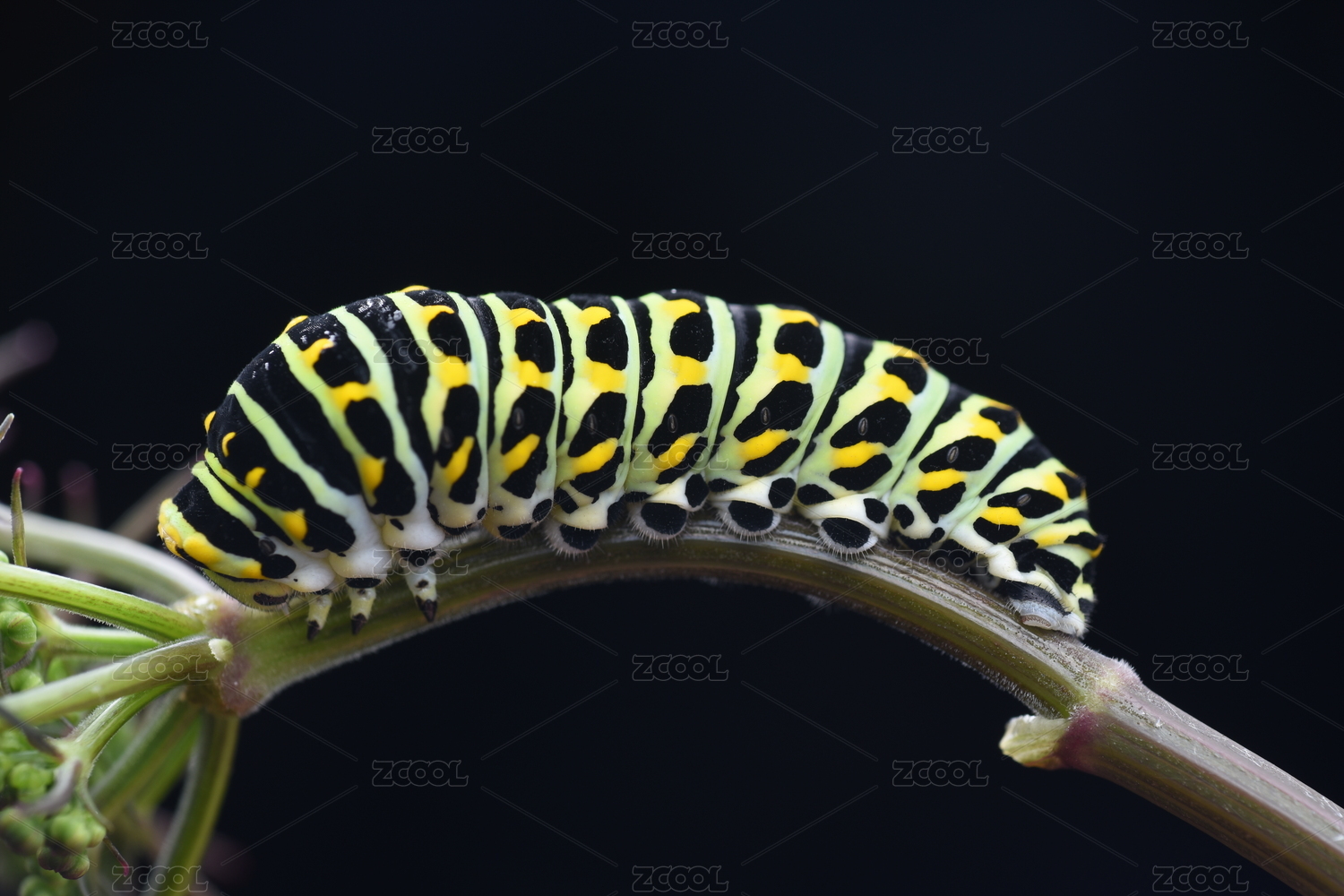 黑色背景上的毛毛虫