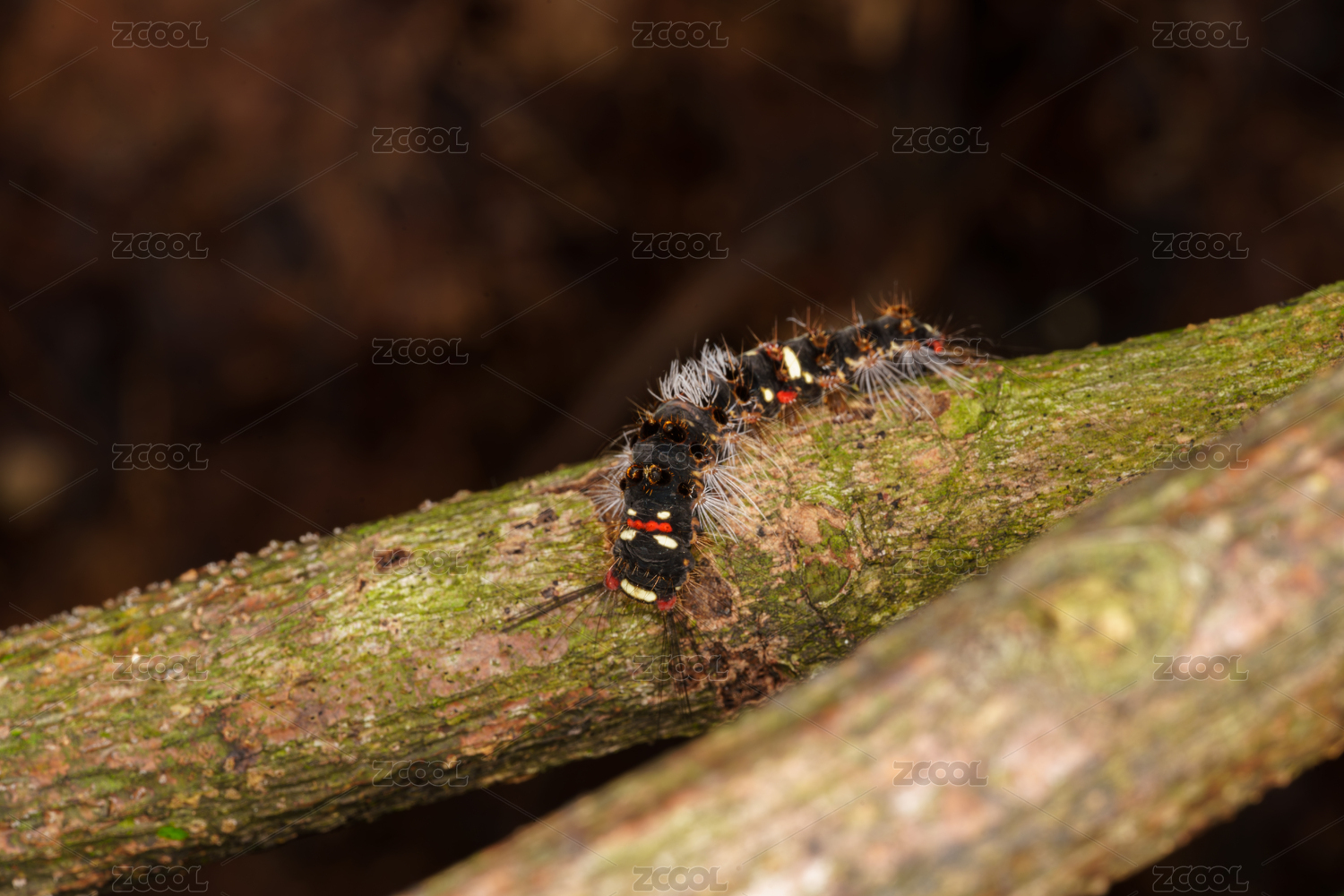 枝干上的毛毛虫特写