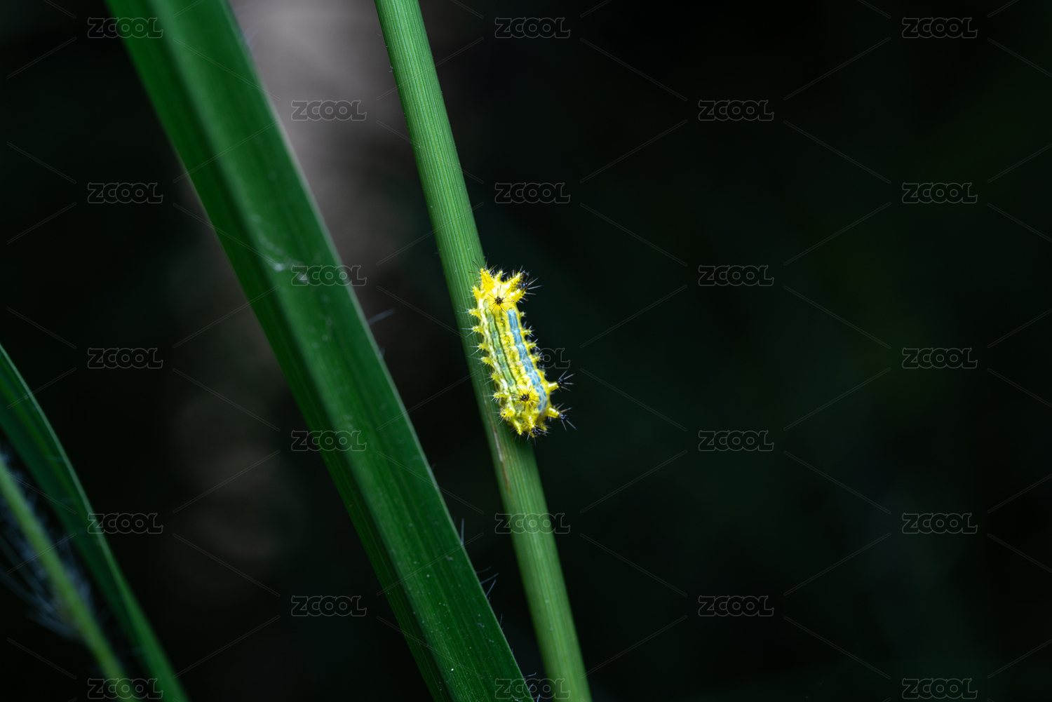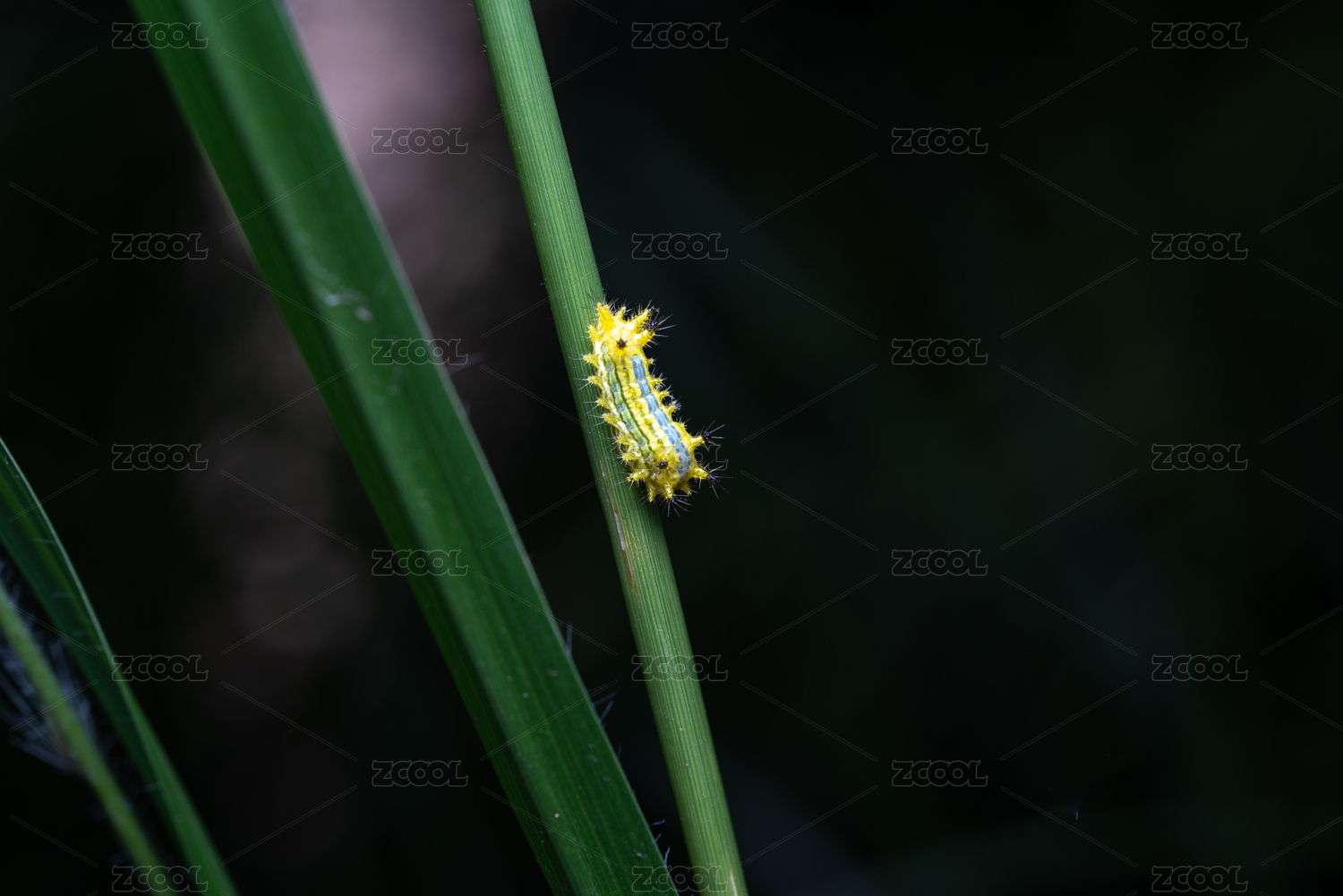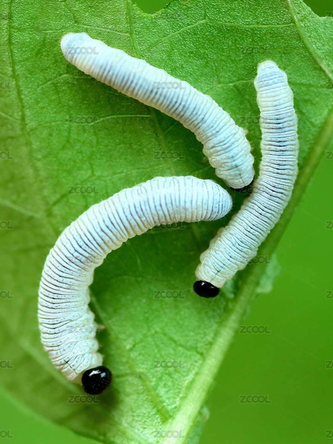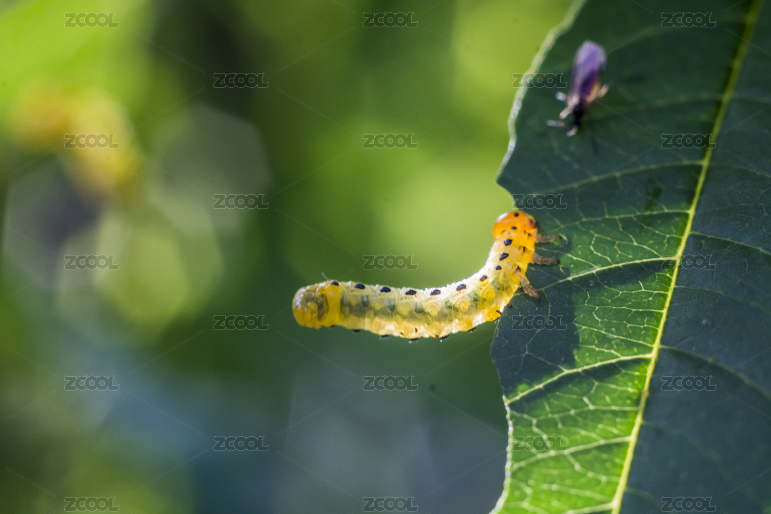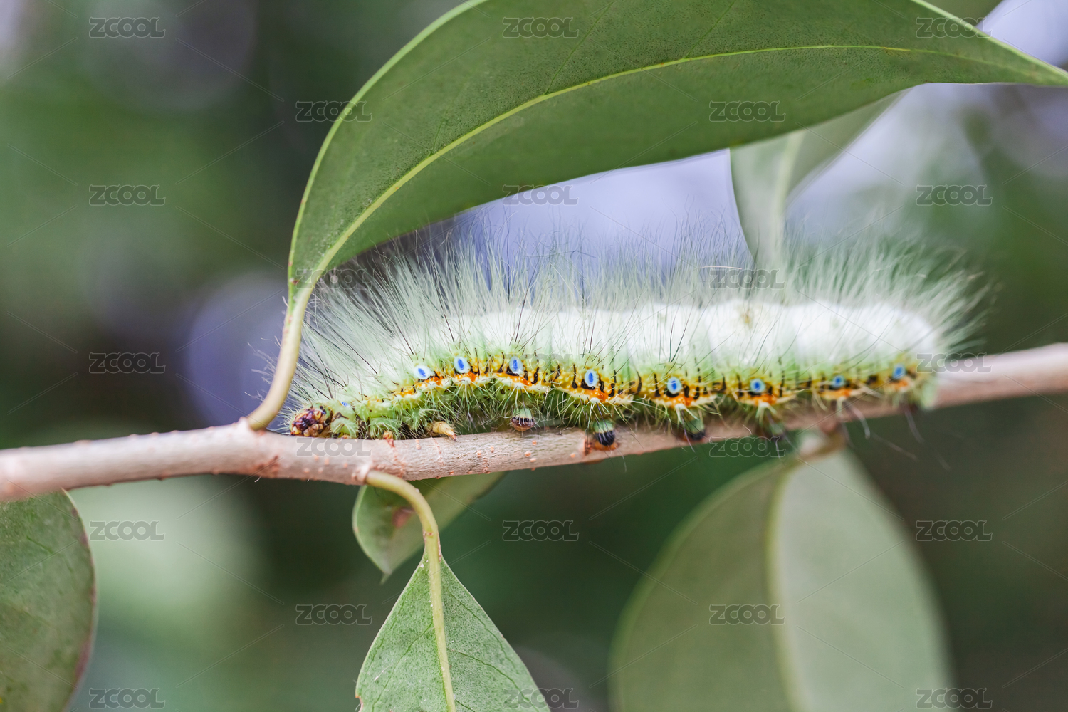 毛毛虫栖息绿叶