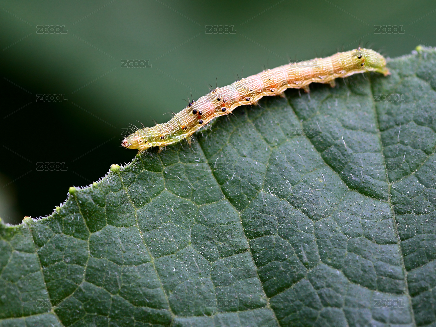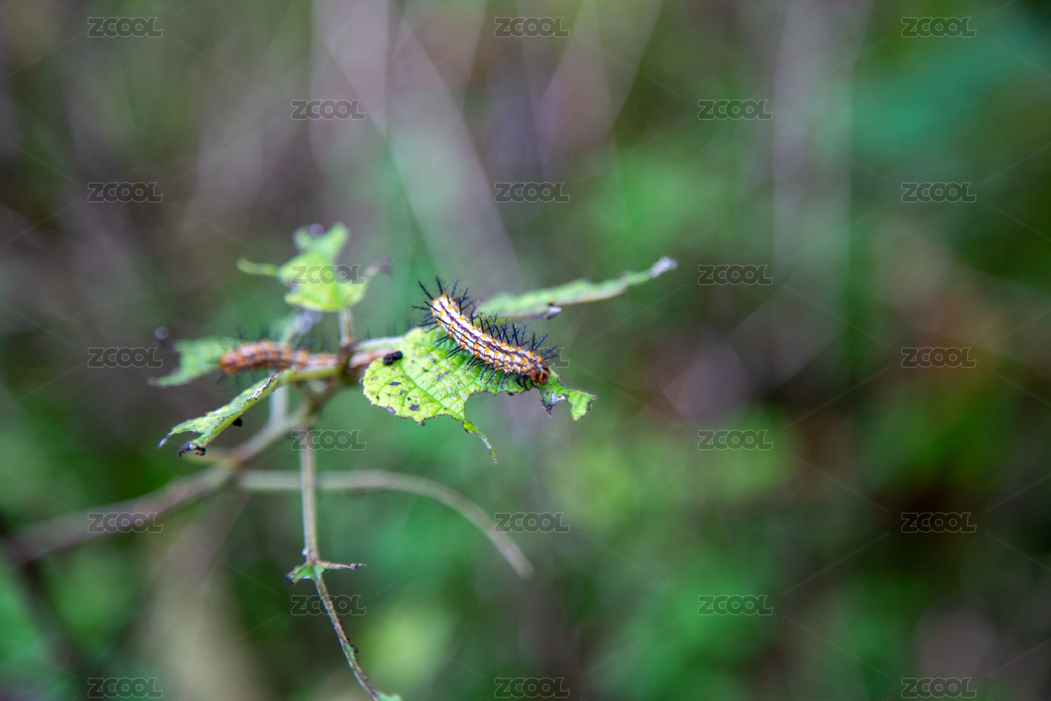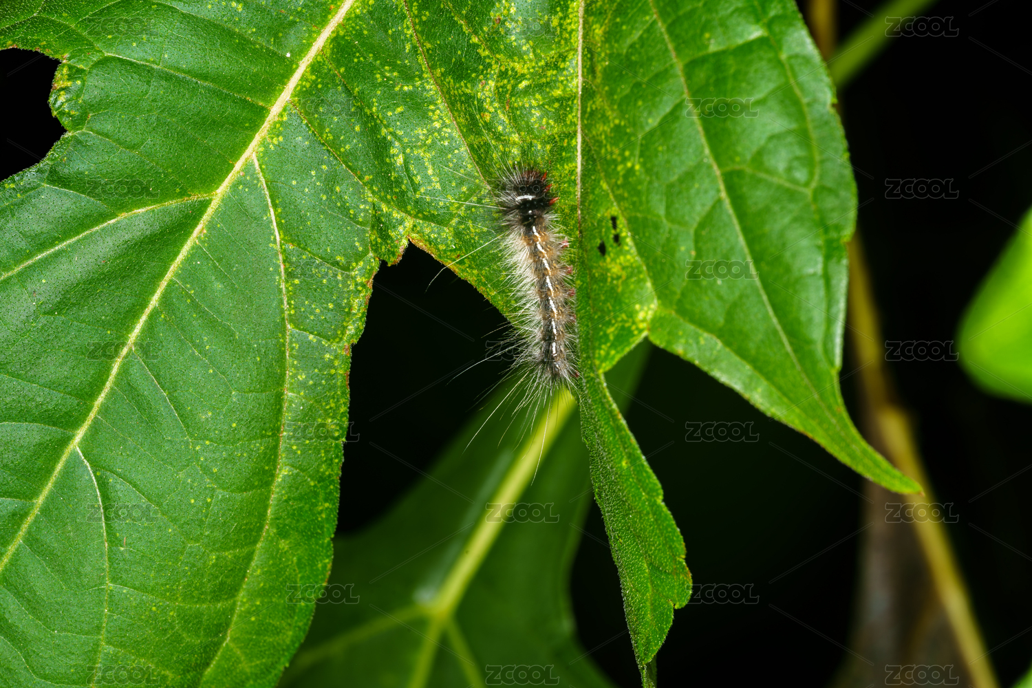绿叶上的毛毛虫