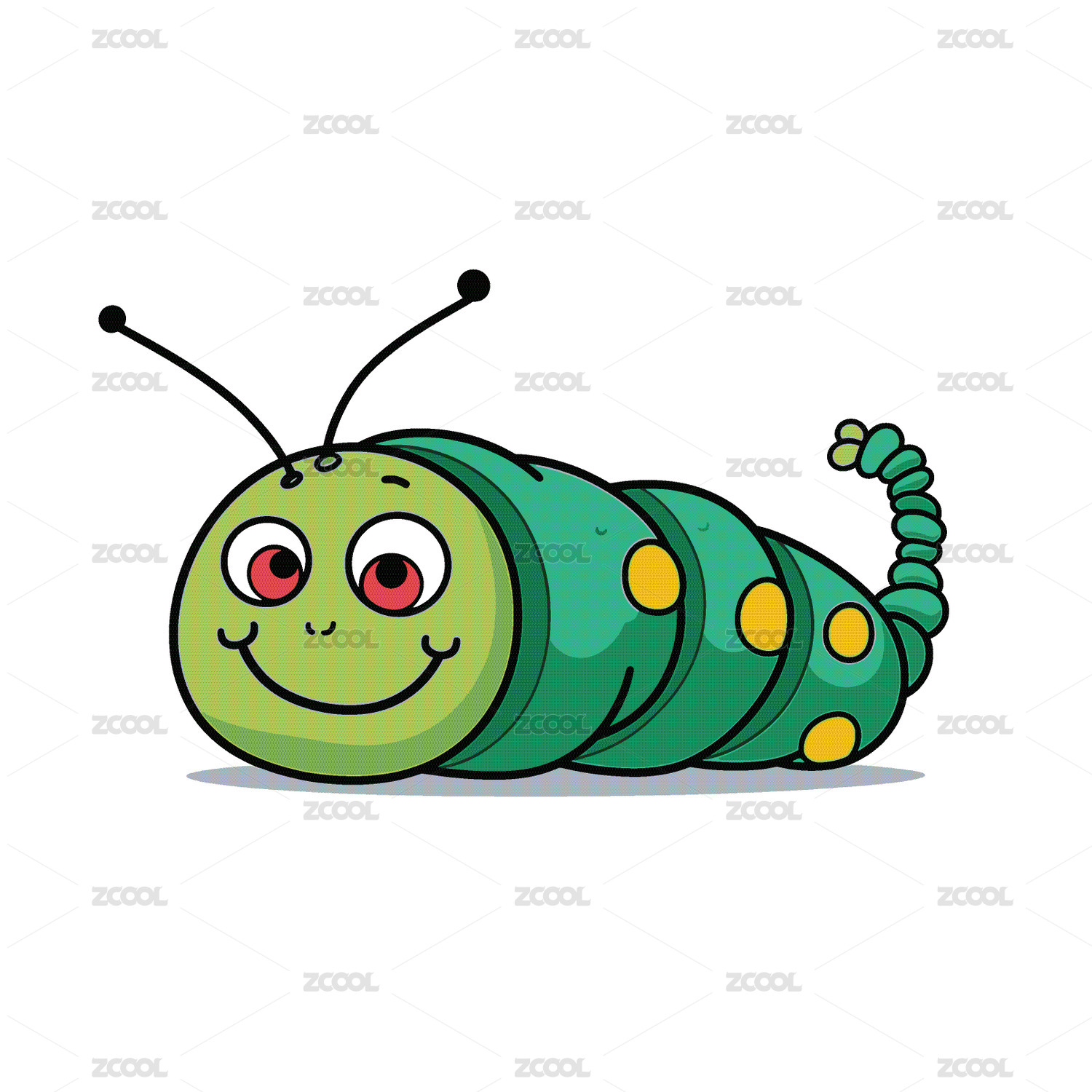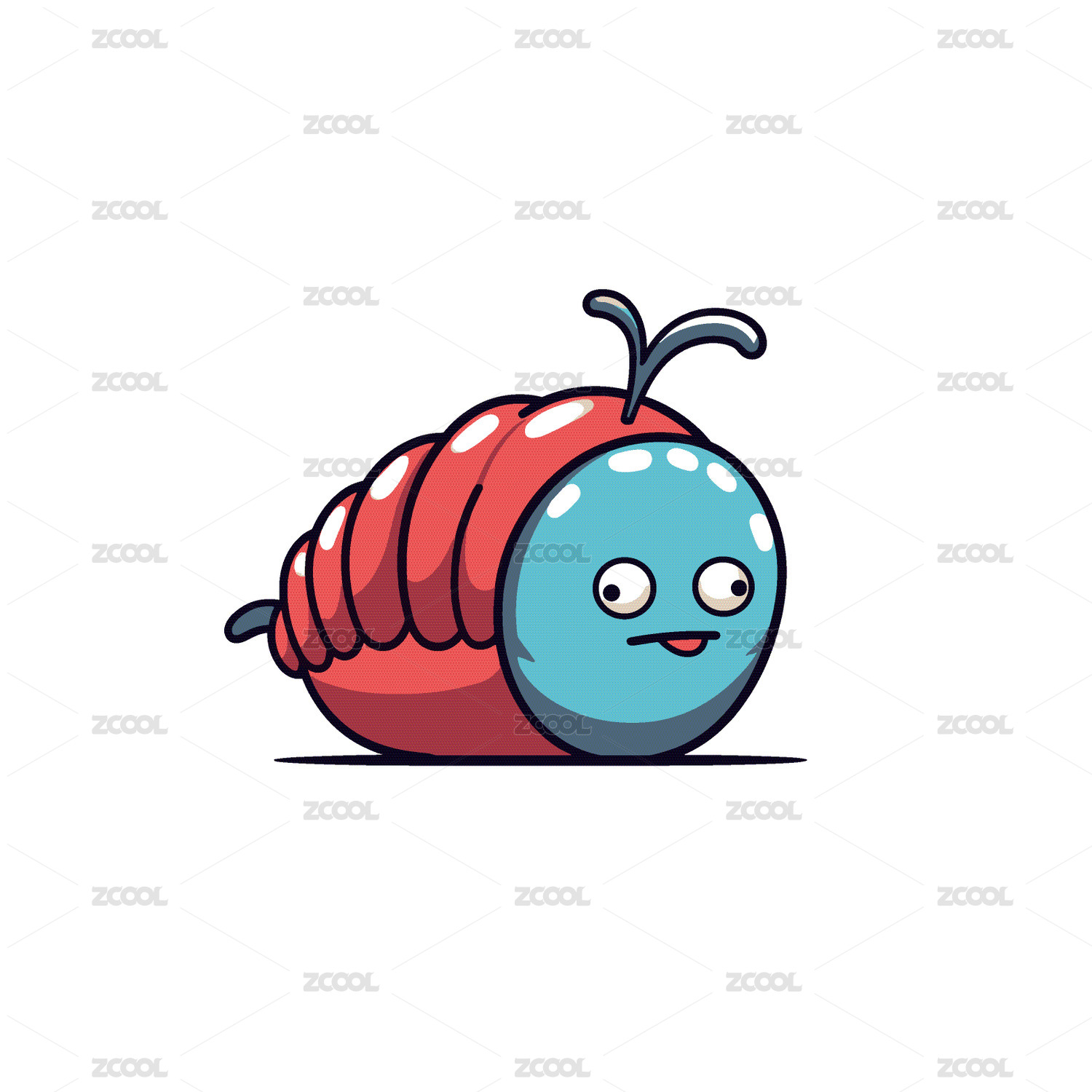 卡通红色毛毛虫再地上爬行