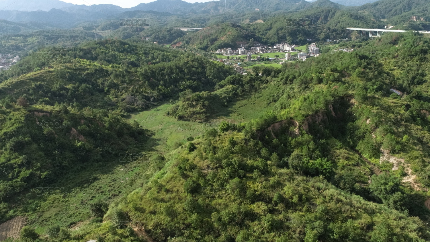中国广东省梅州市风景优美小山村航拍