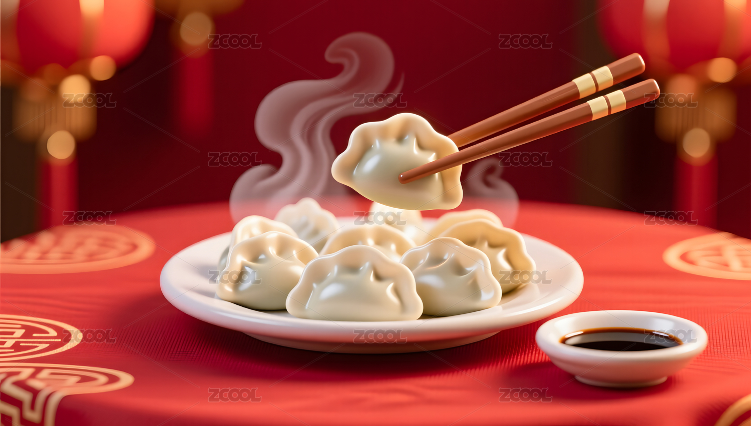 家庭餐桌热气腾腾饺子温暖节日氛围