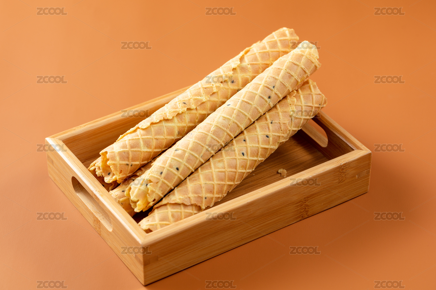 放在木盘上的蛋卷