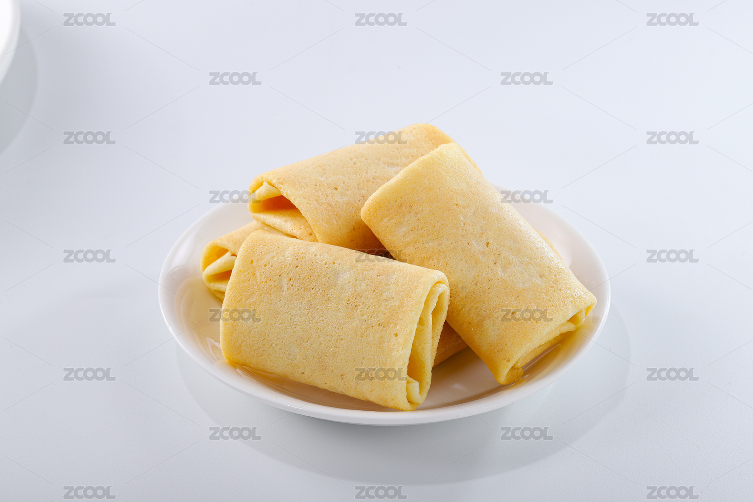 白色背景的小吃美食蛋卷酥烘焙食品