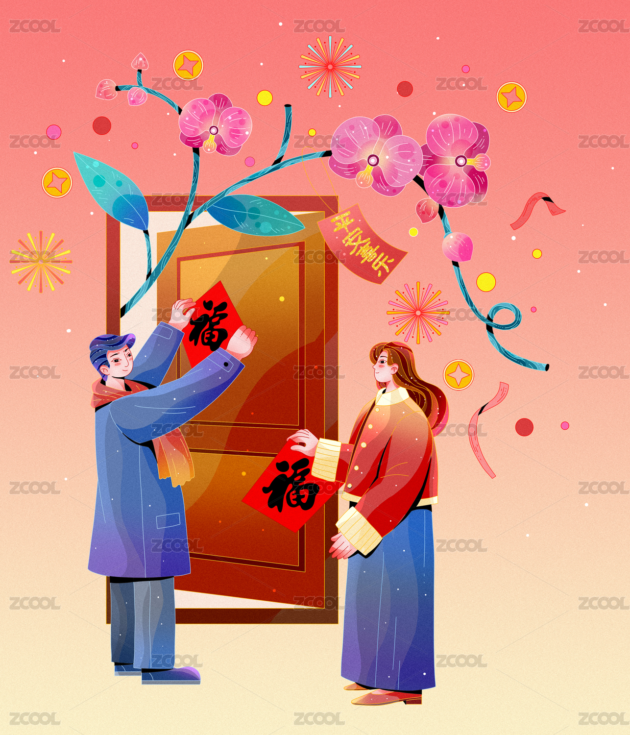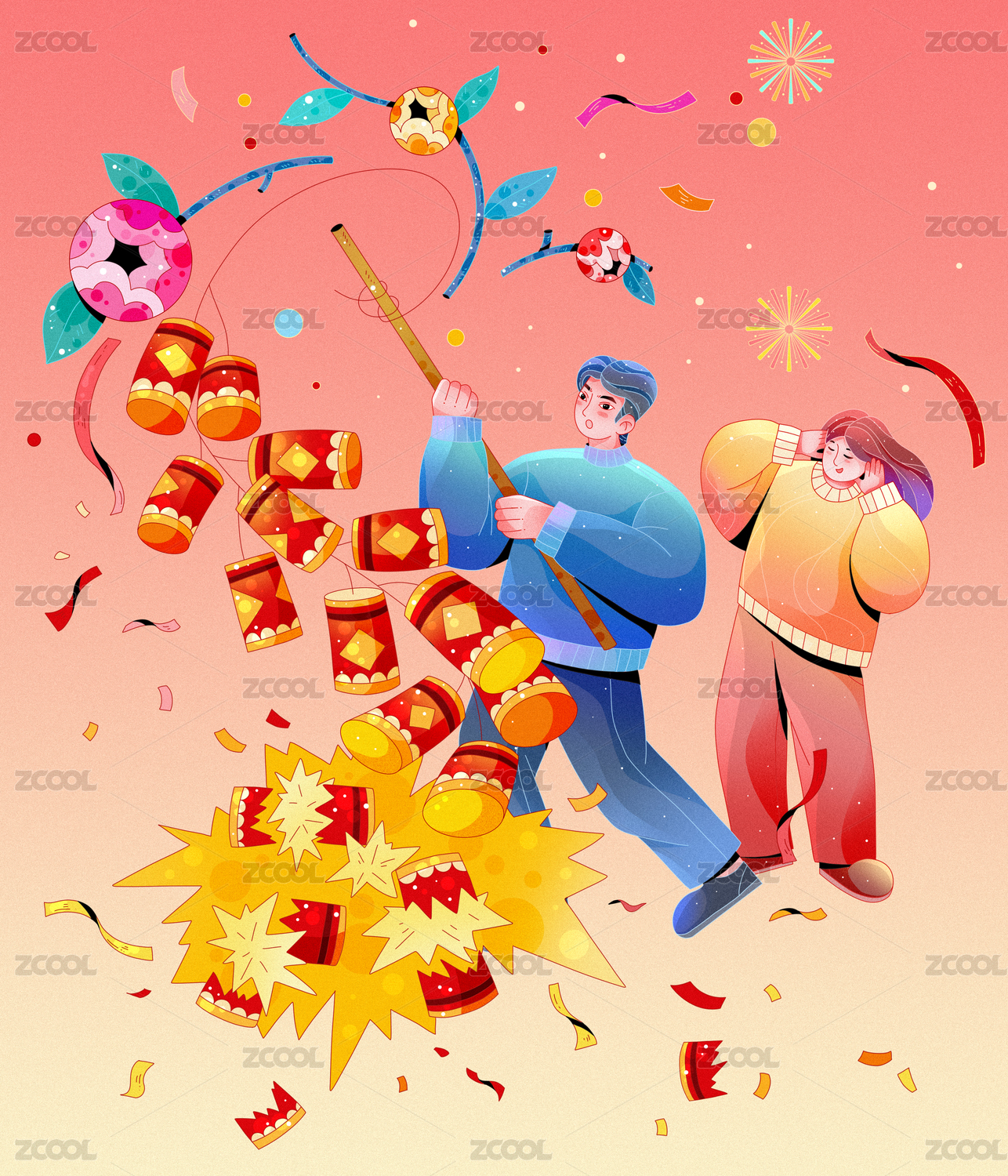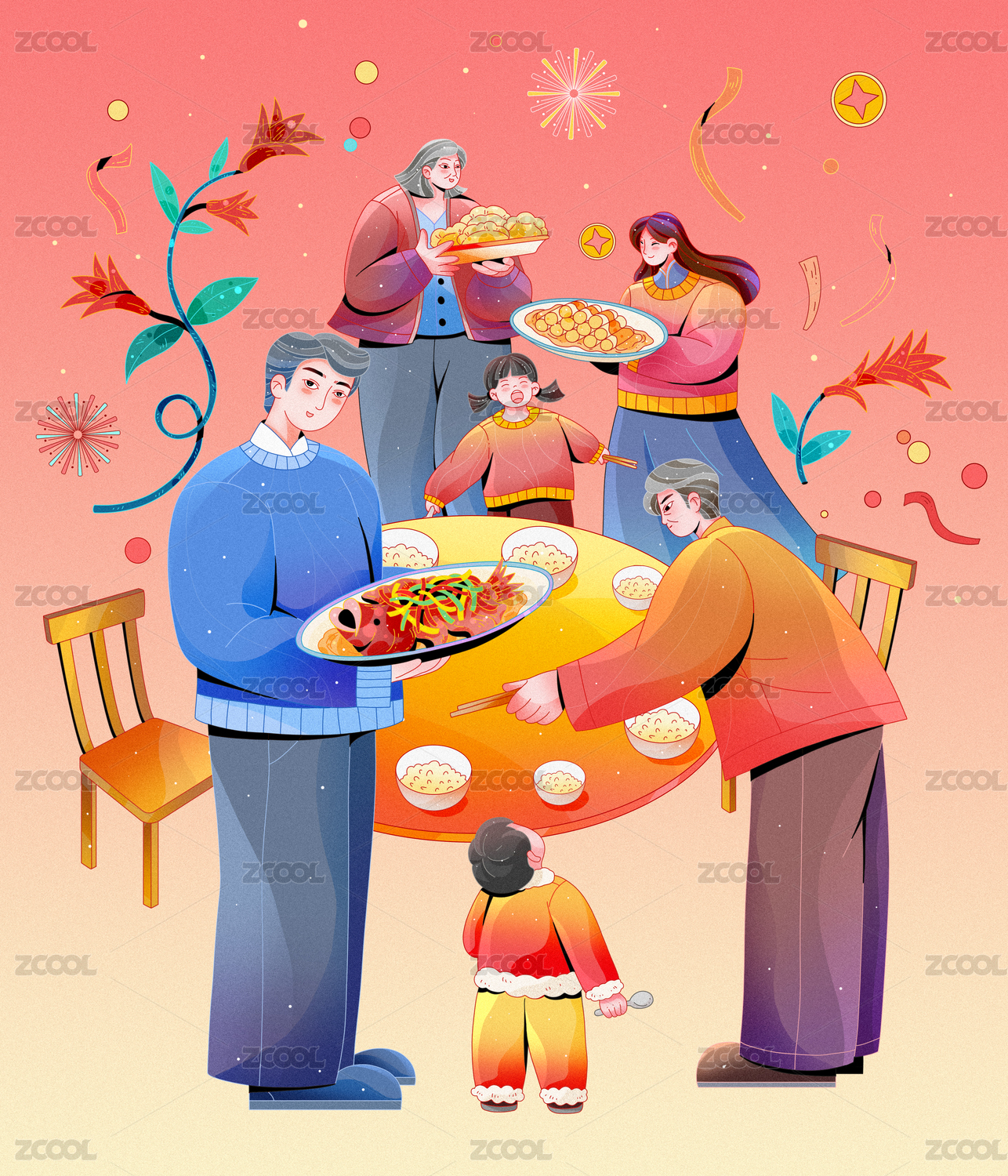 春节新年过年腊月二十七杀公鸡习俗矢量插画