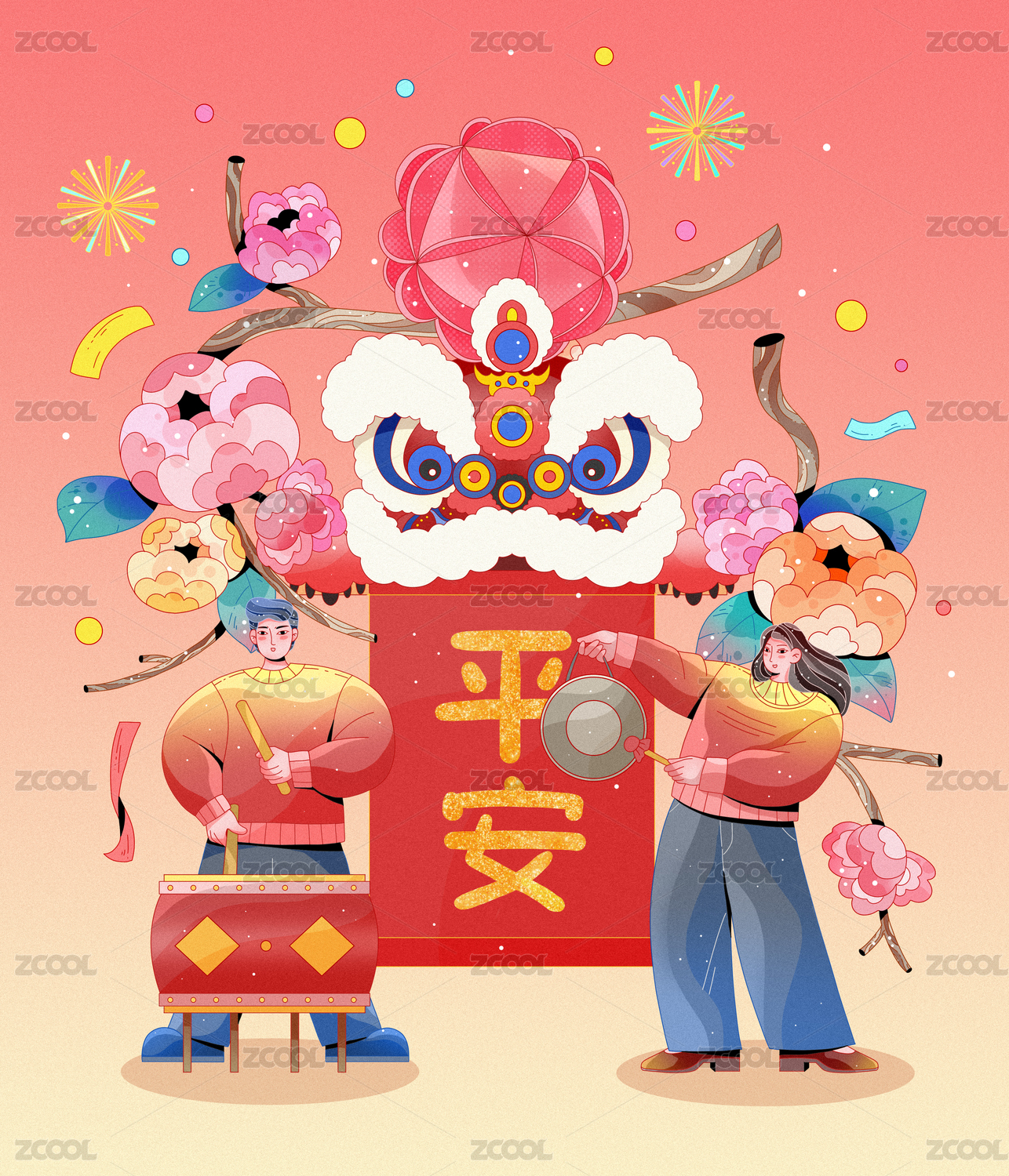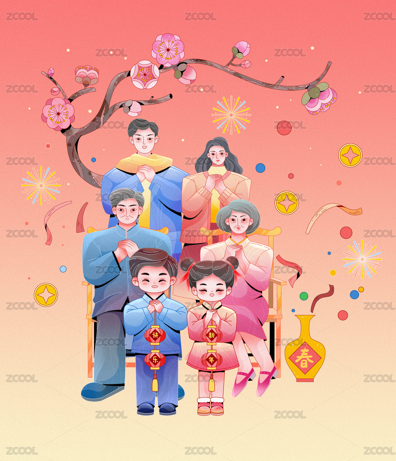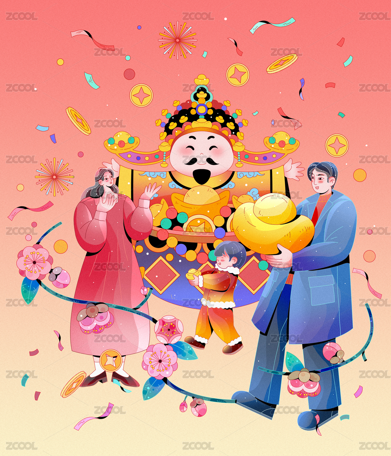 春节新年过年腊月二十七杀公鸡习俗矢量插画
