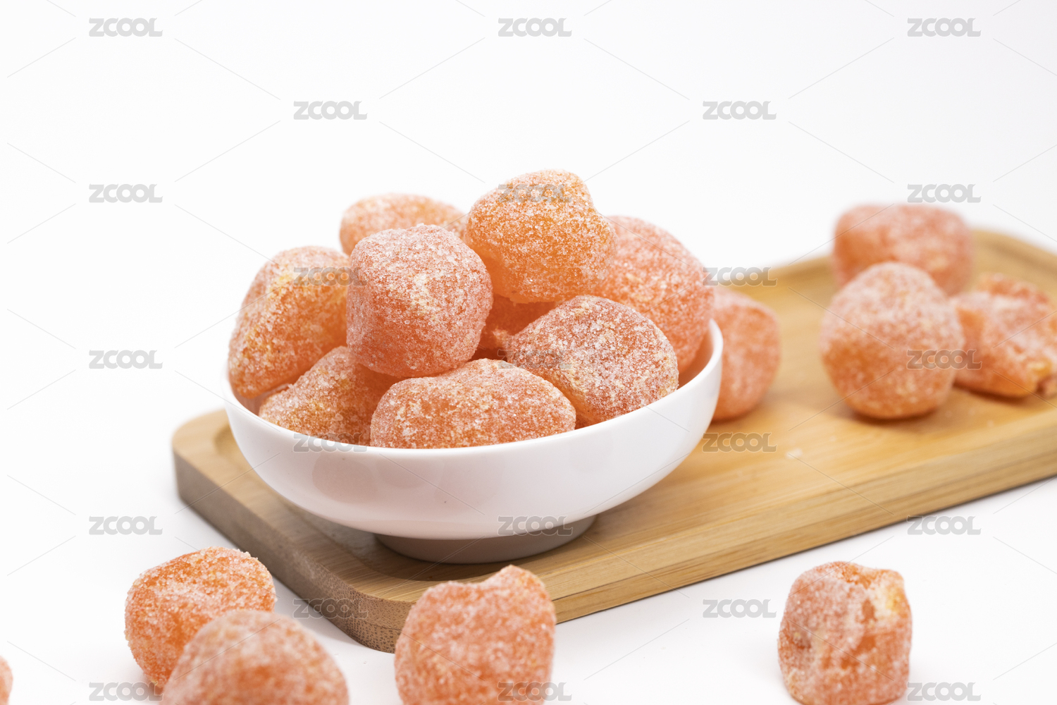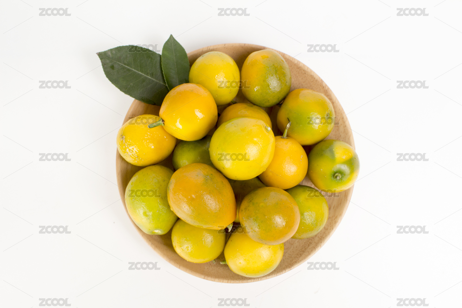 青金桔装在小木盘里放在白底上