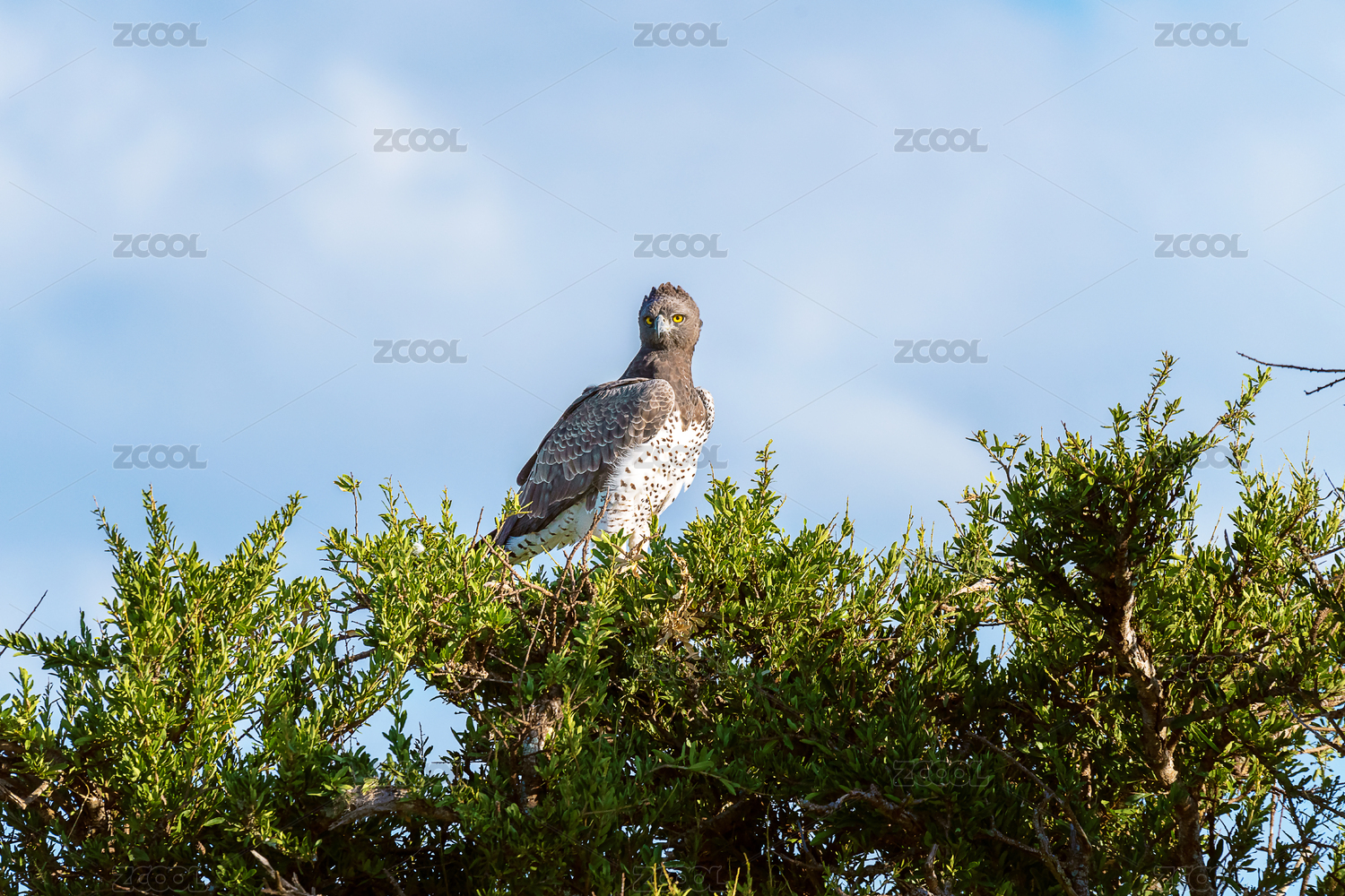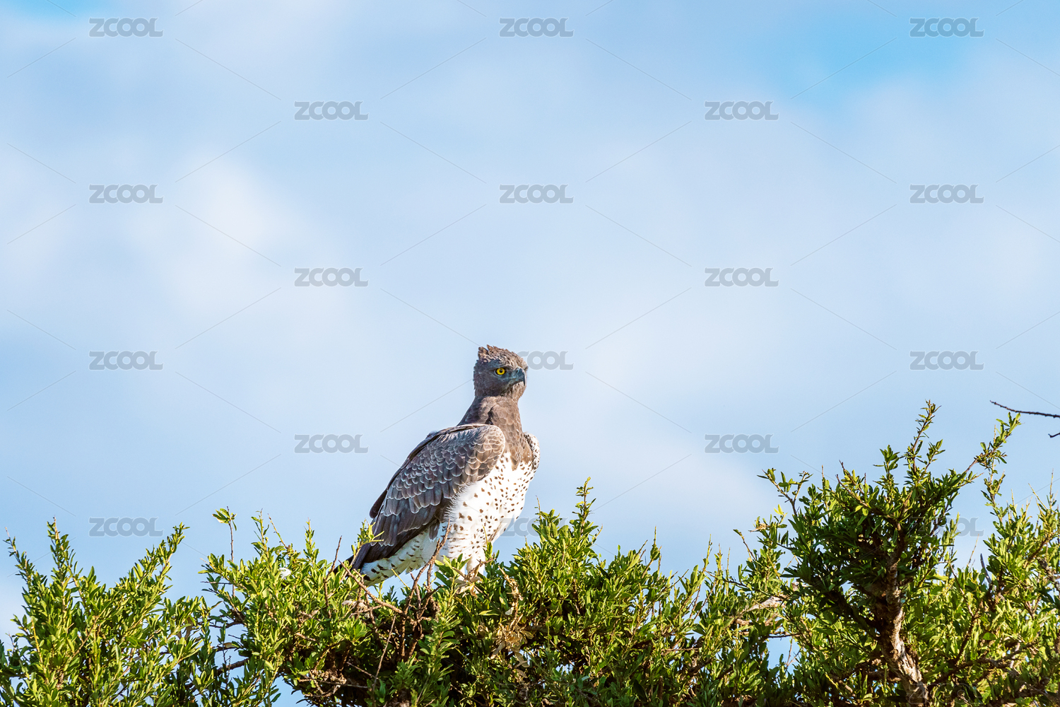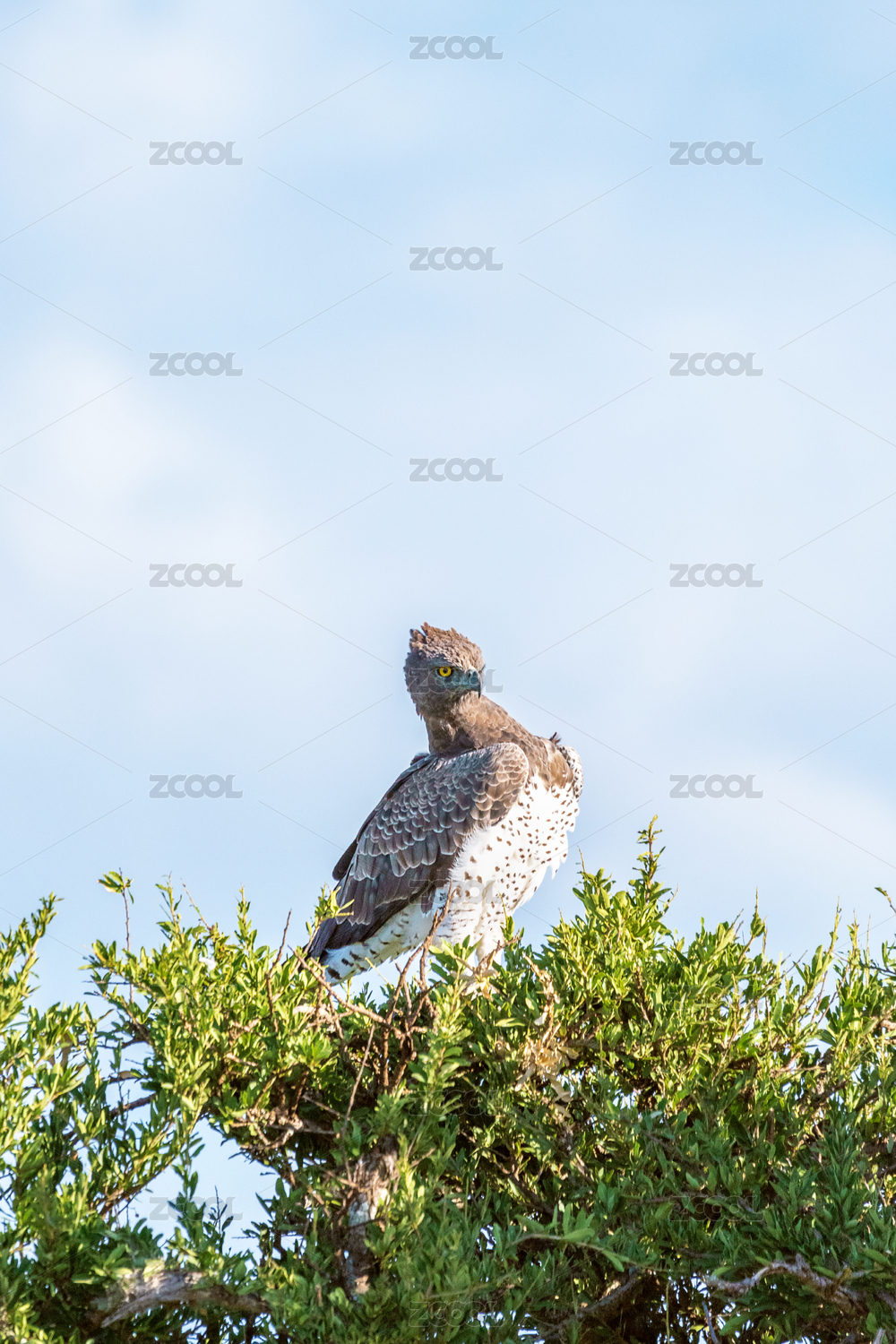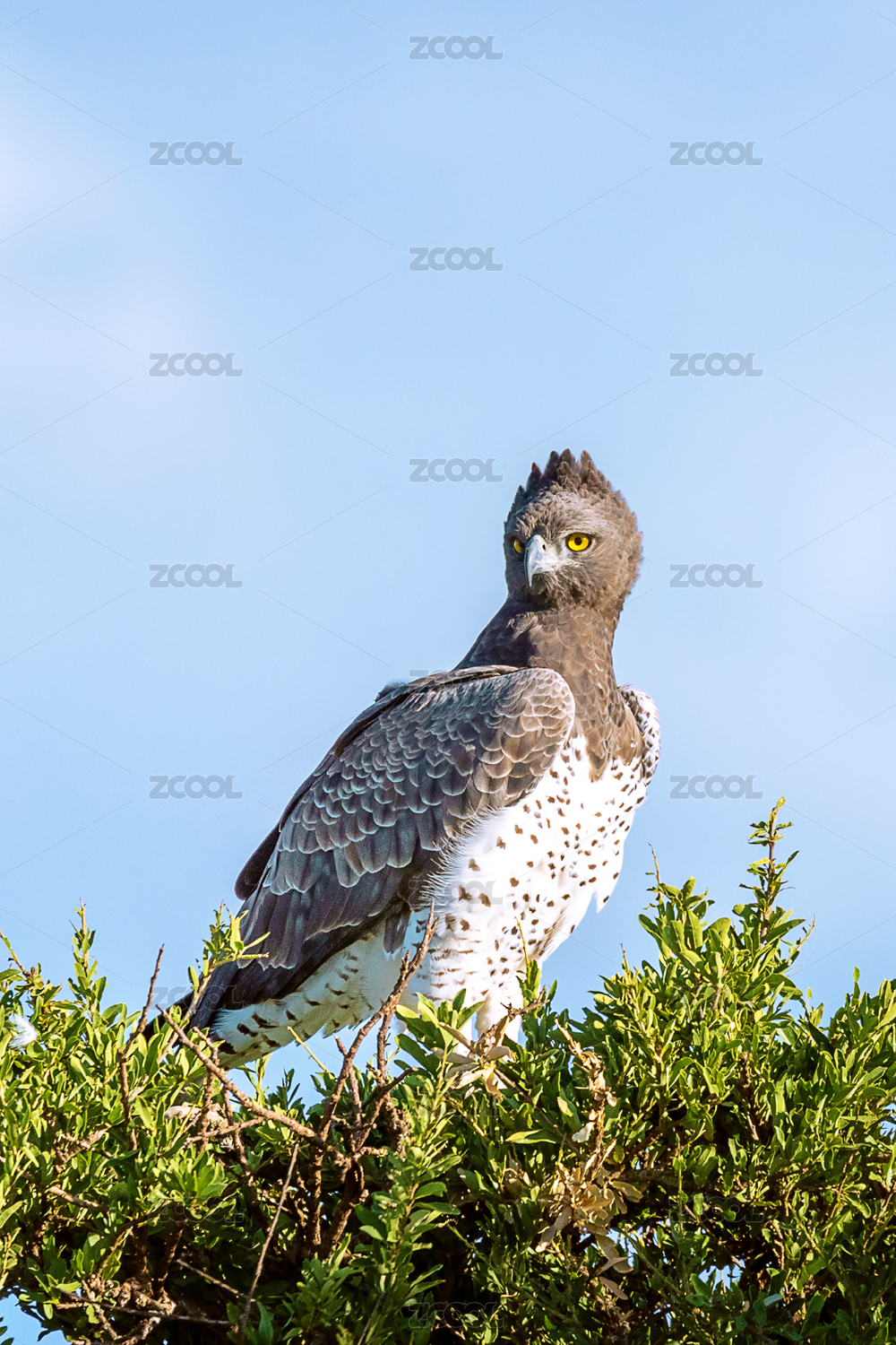 非洲野生鸟类——站在树梢上的黑胸短趾雕(Black-chested Snake-eagle))