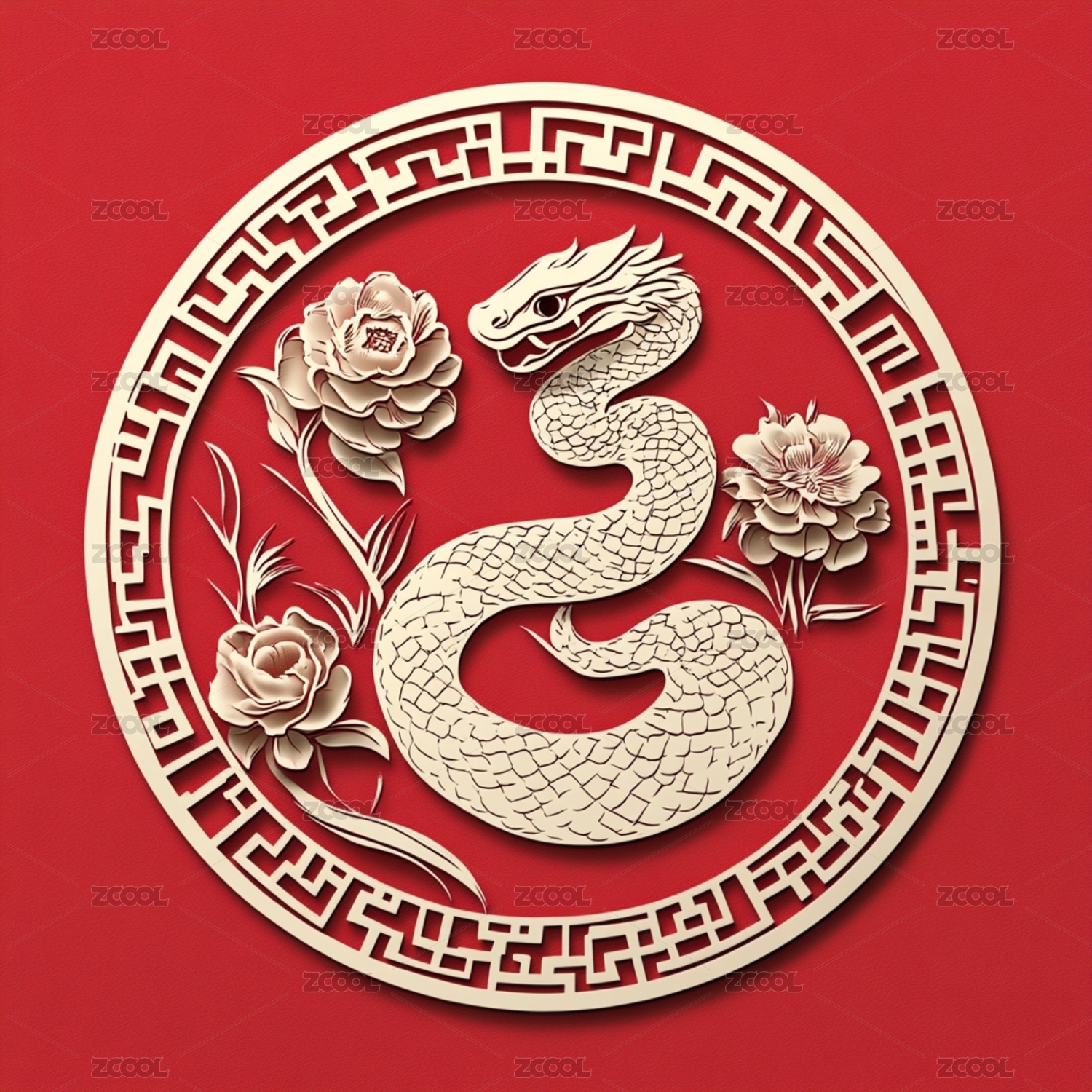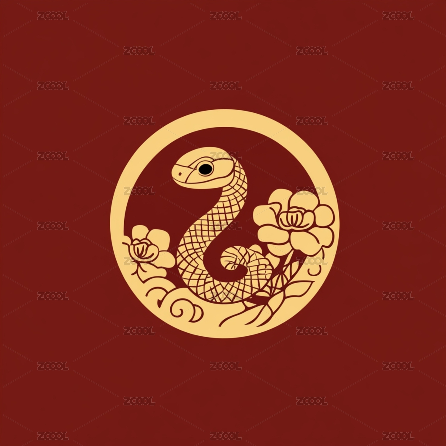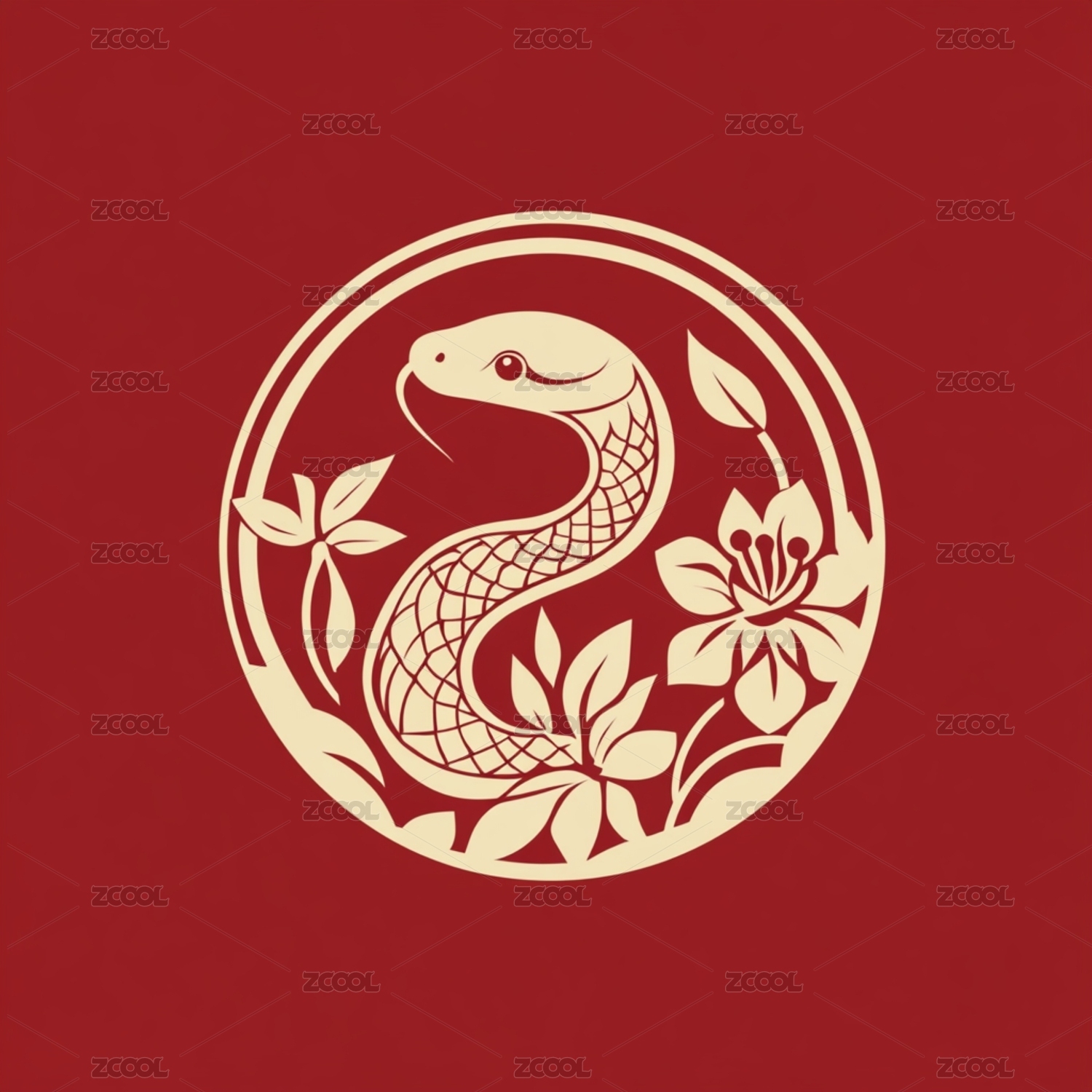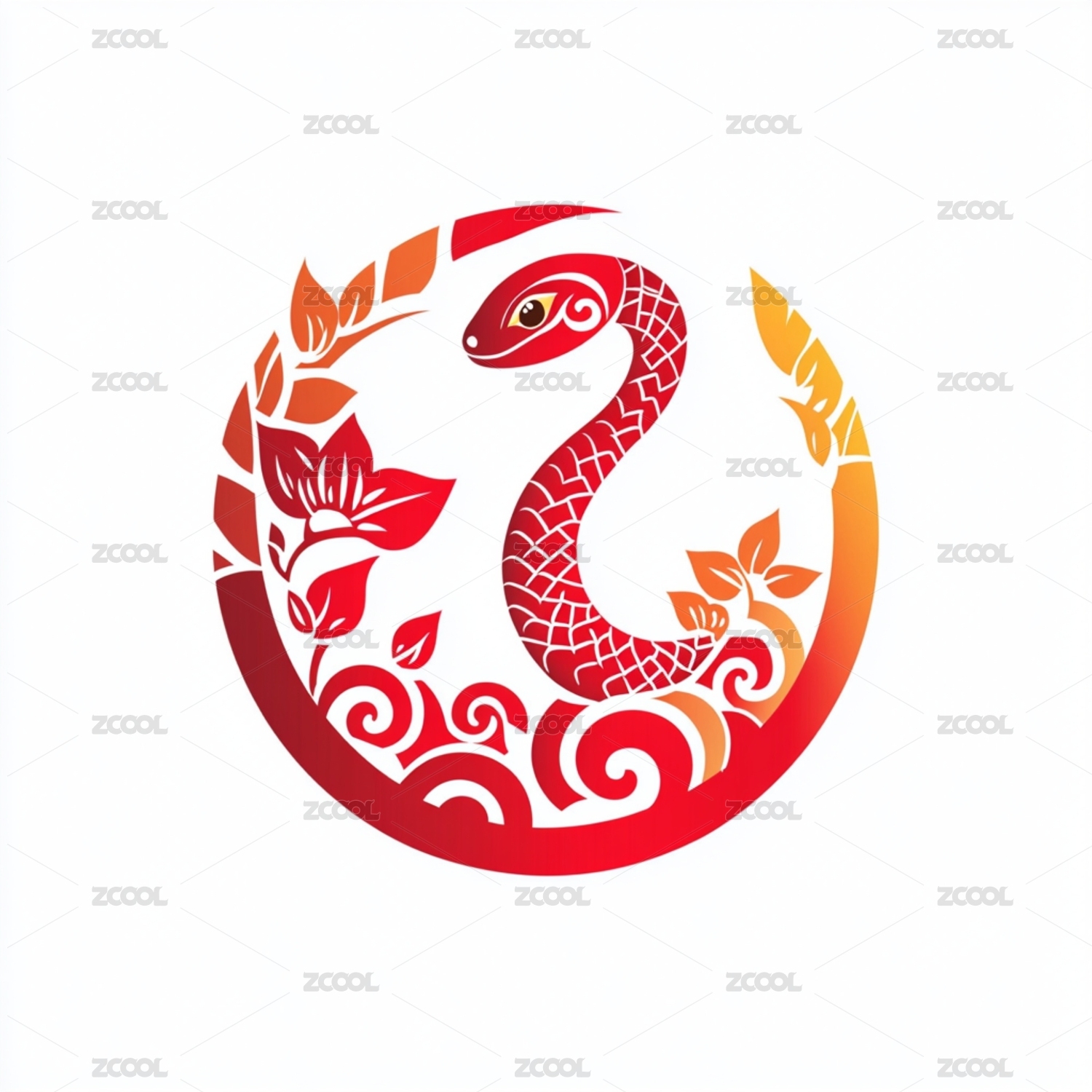 蛇年主题插画艺术剪纸图案logo徽章标志