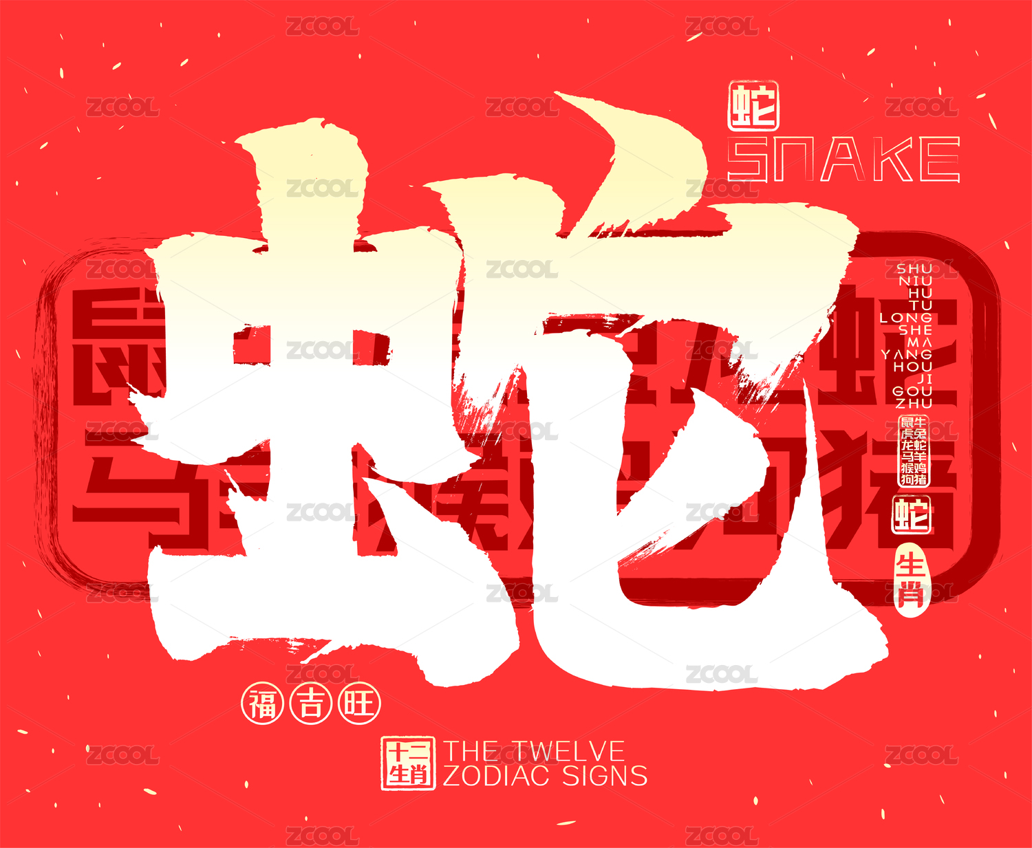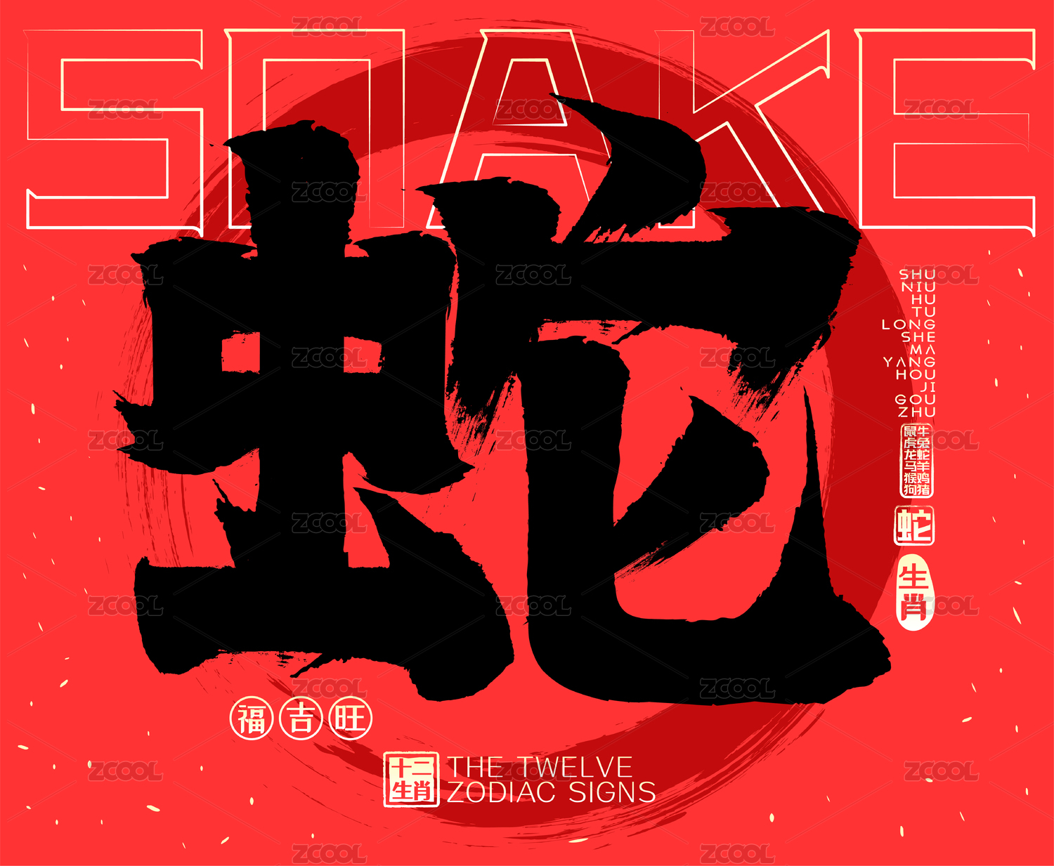蛇十二生肖喜庆水墨中国风矢量书法字