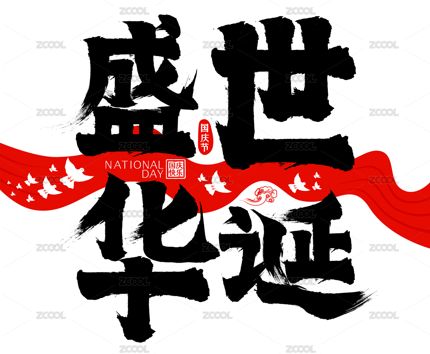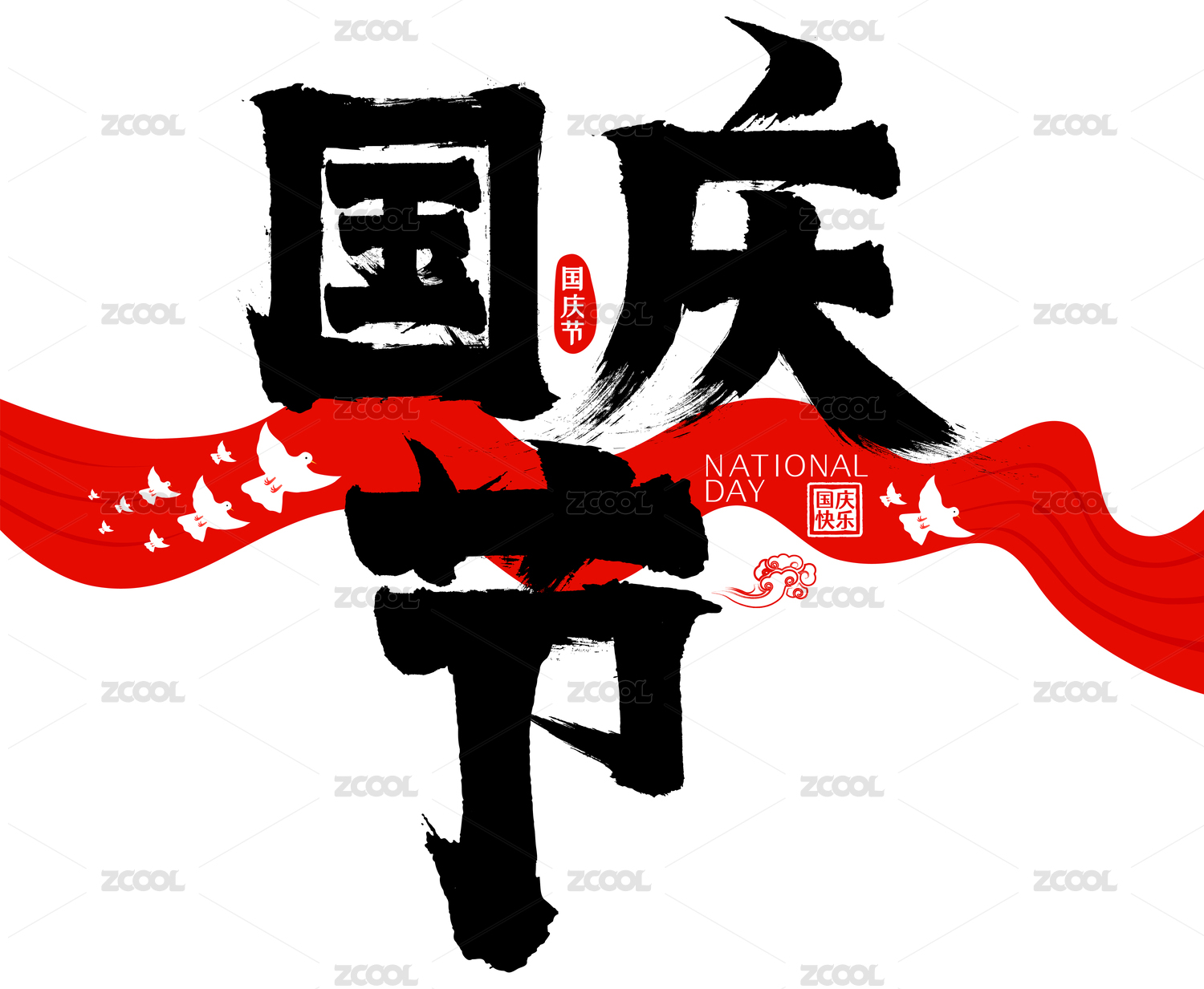 贺中秋迎国庆星球红绸鸽子矢量书法字