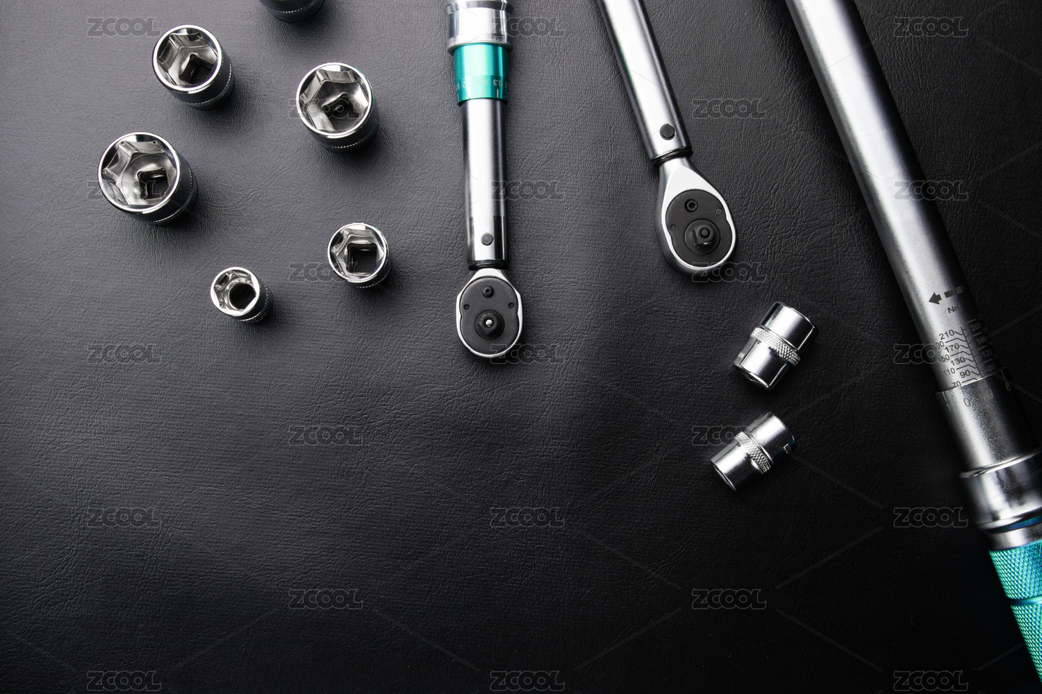 黑色背景中的套筒和扭力扳手